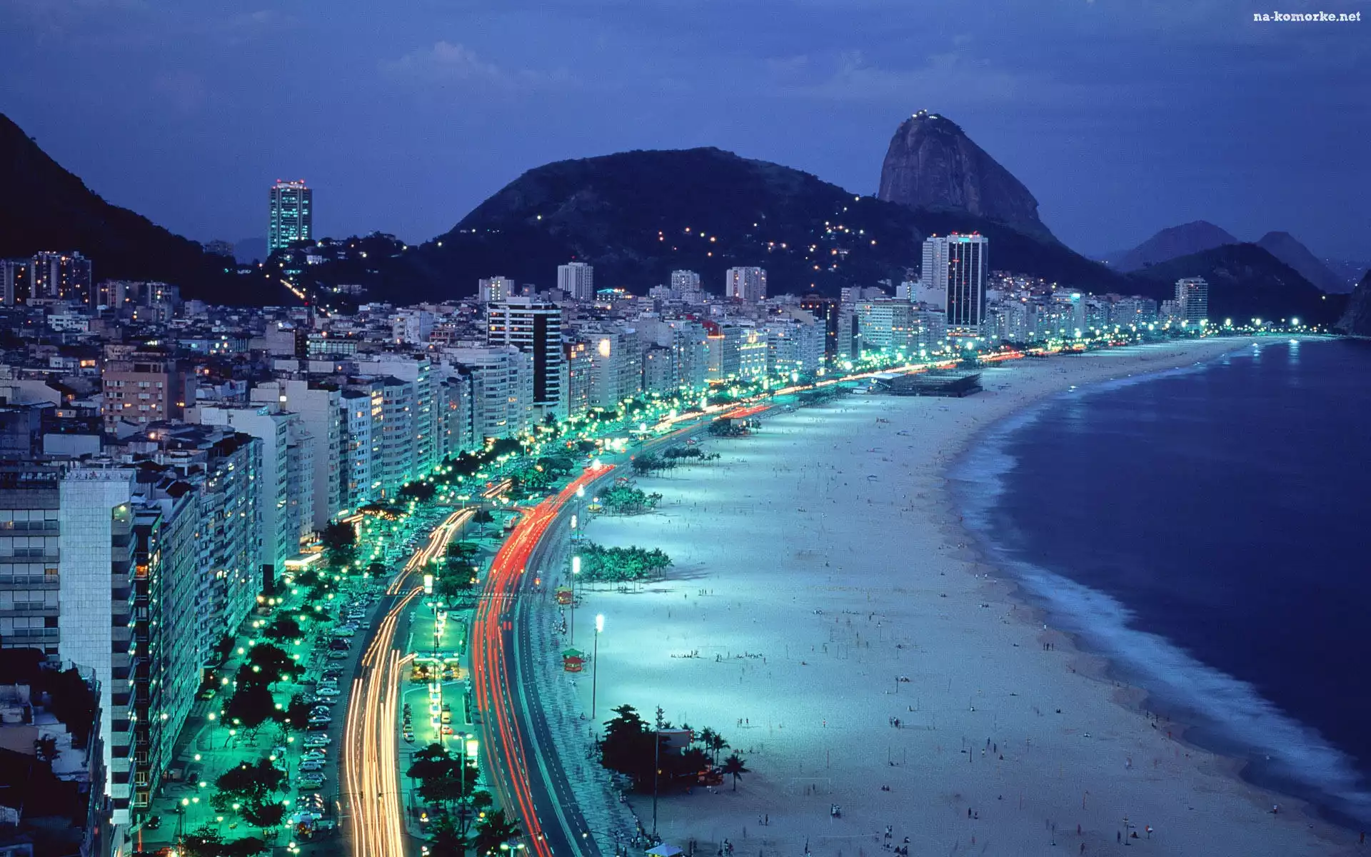 Noc, Wybrzeże, Morze, Plaża, Miasto na Komórkę