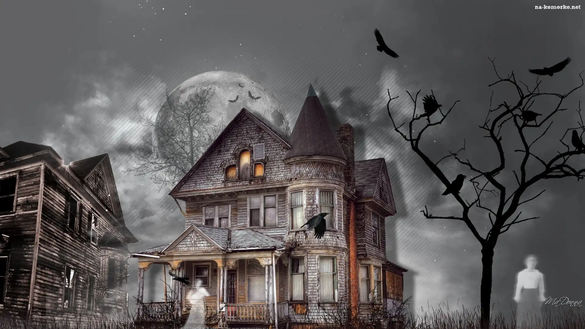Noc, Domy, Drzewo, Ptaki, Duchy na Komórkę