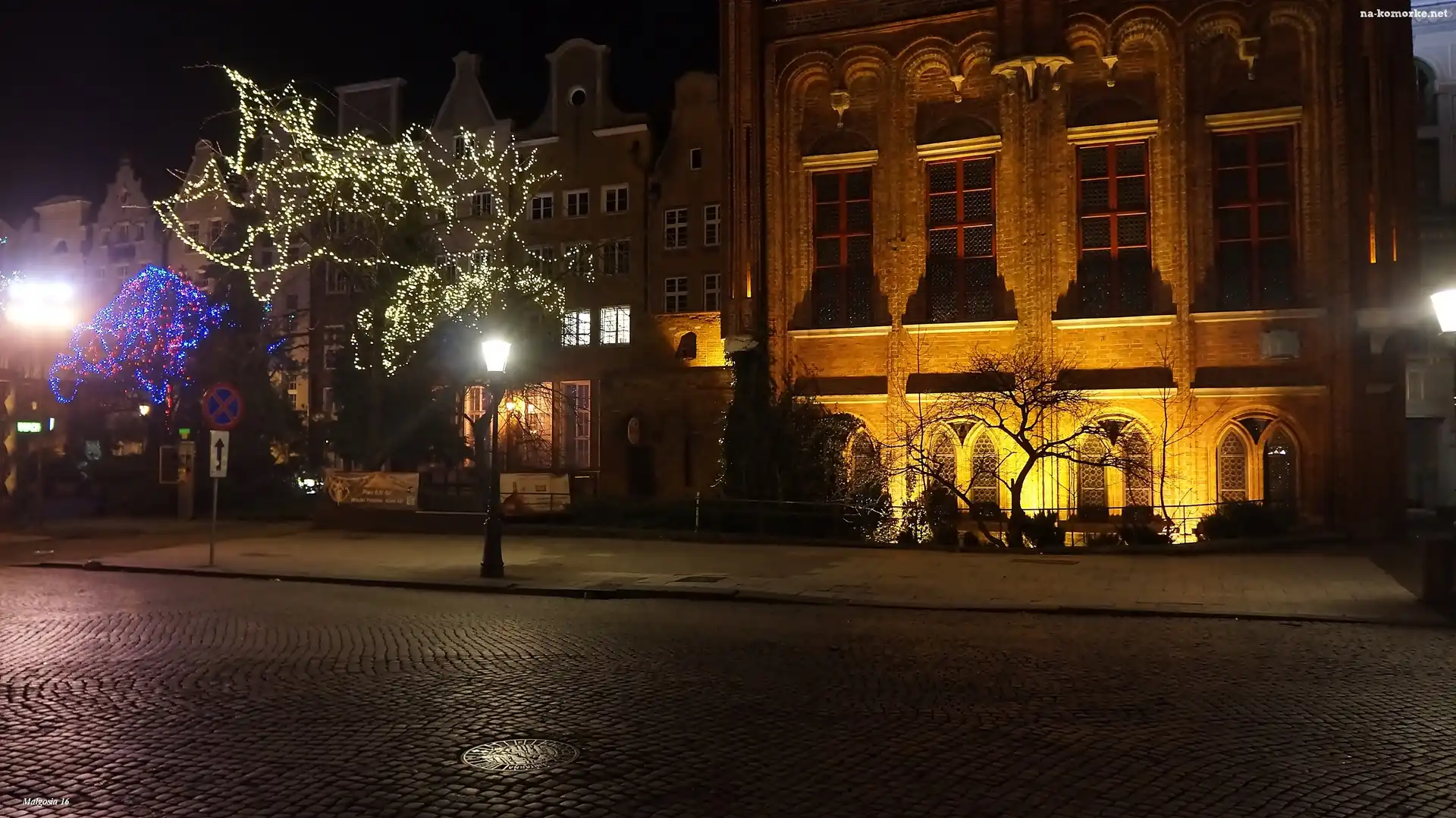 Noc, Gdańsk, Miasto, Świąteczne, Uliczka, Budynki na Komórkę