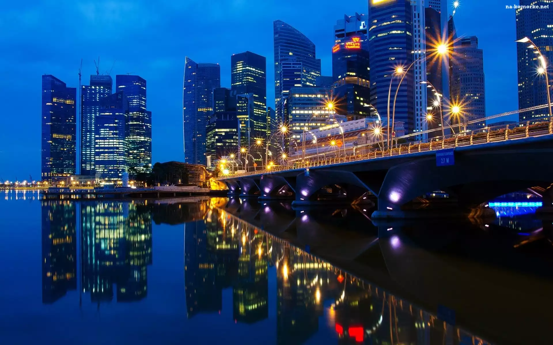 Noc, Rzeka, Most, Wieżowce, Miasto na Komórkę