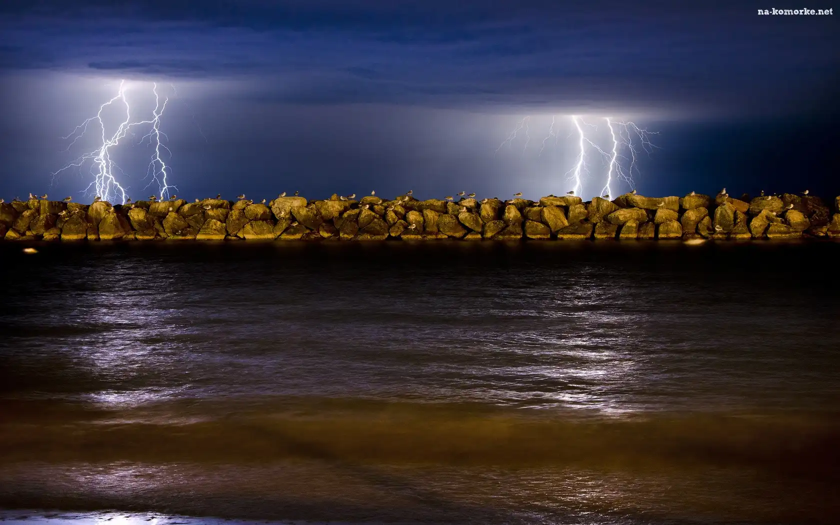 Noc, Błyskawice, Wybrzeże, Mewy na Komórkę