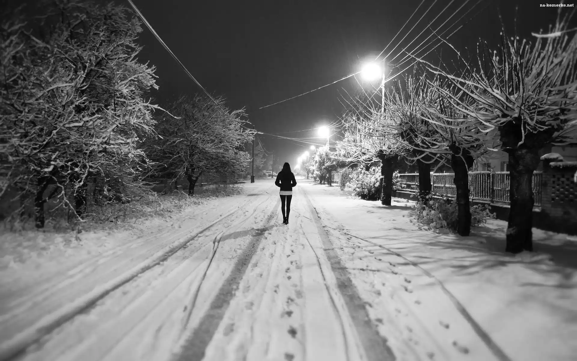 Noc, Spacer, Zima, Dziewczyna na Komórkę