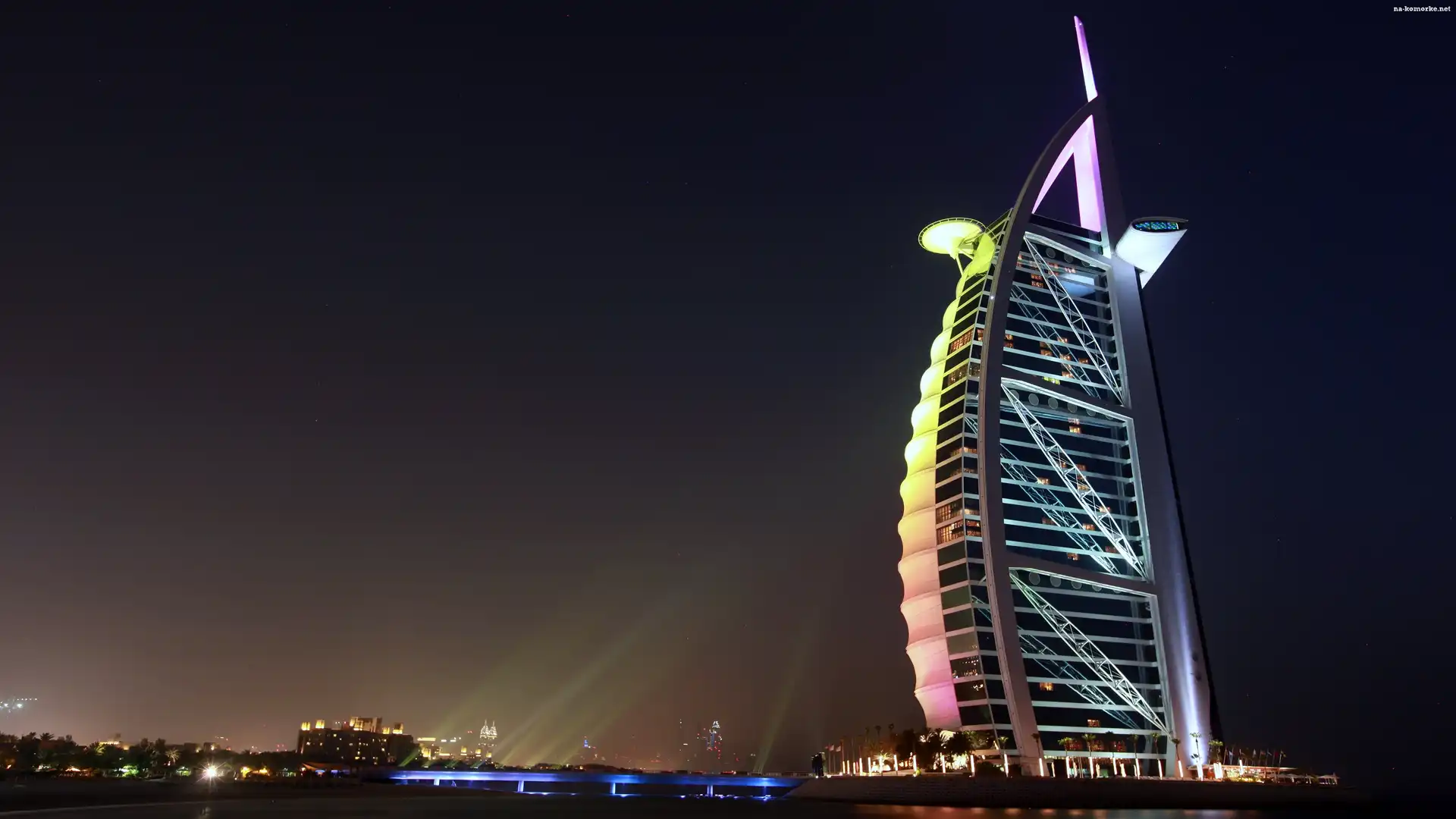 Zjednoczone Emiraty Arabskie, Palmy, Miasto Nocą, Dubaj, Hotel, Burdż al-Arab, Budynki na Komórkę