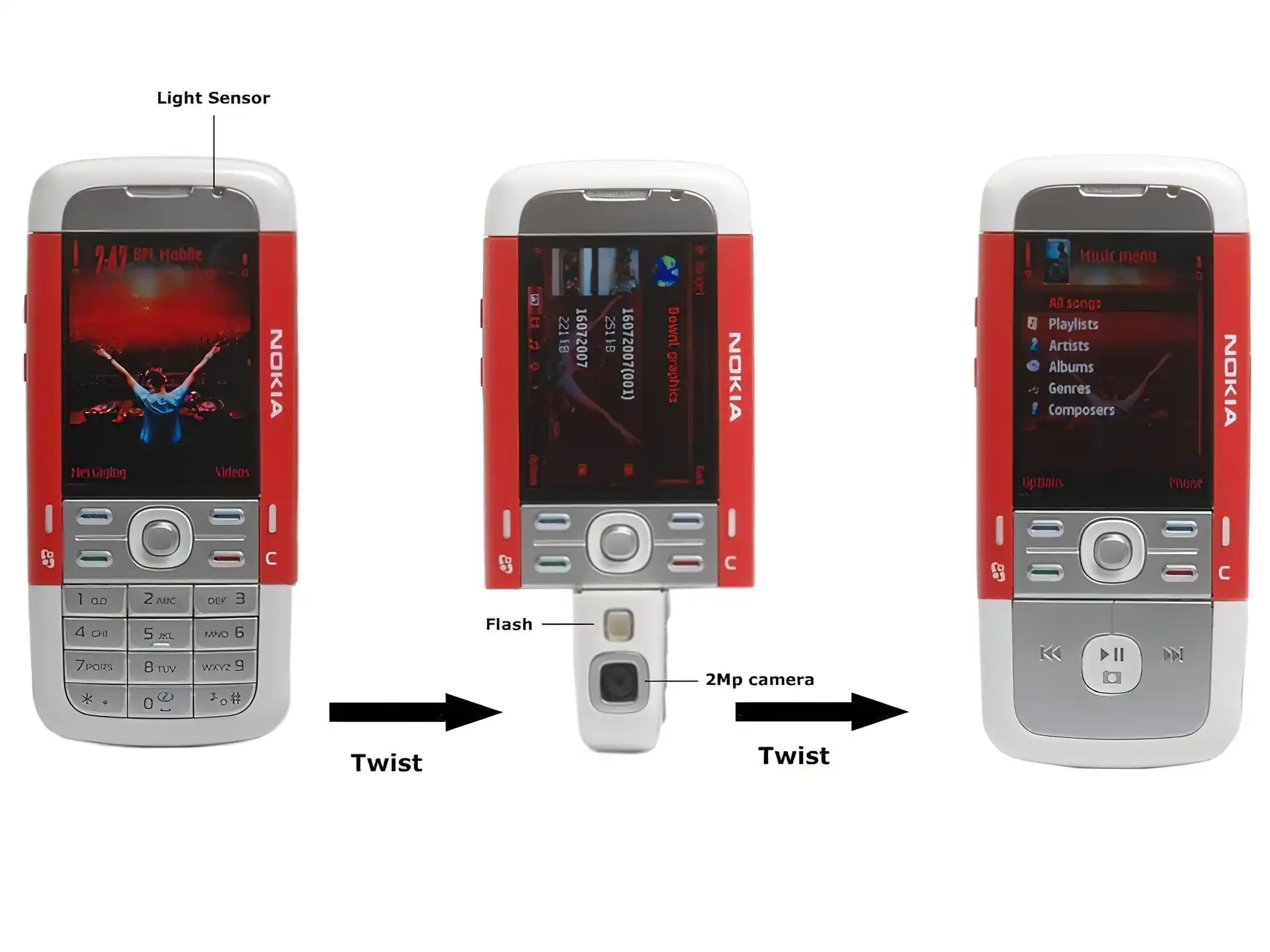 Nokia 3250 XpressMusic, Czerwona, Biała Nokia 3250 XpressMusic, Opis, Czerwona, Szara