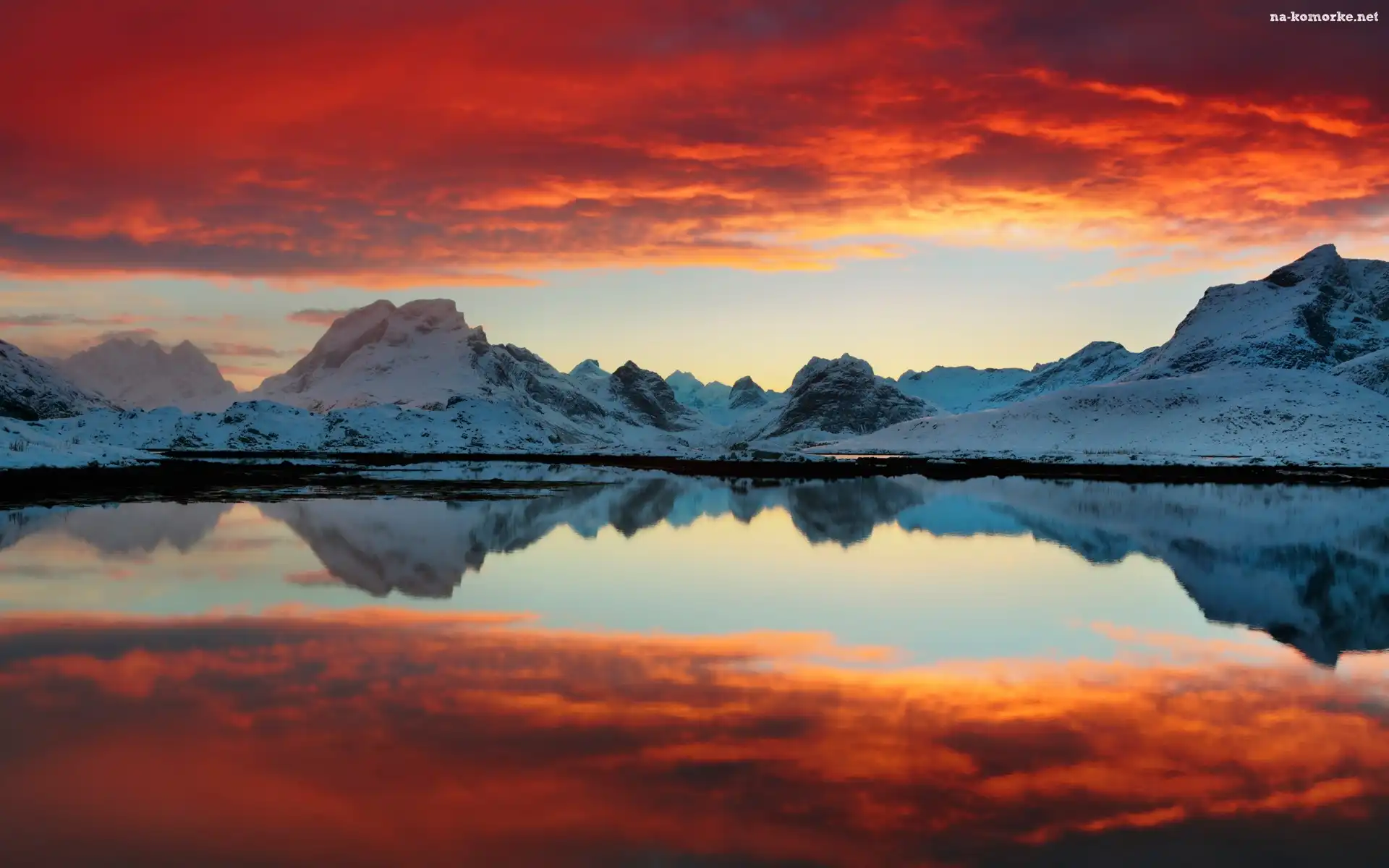 Norwegia, Śnieg, Góry, Odbicie na Komórkę