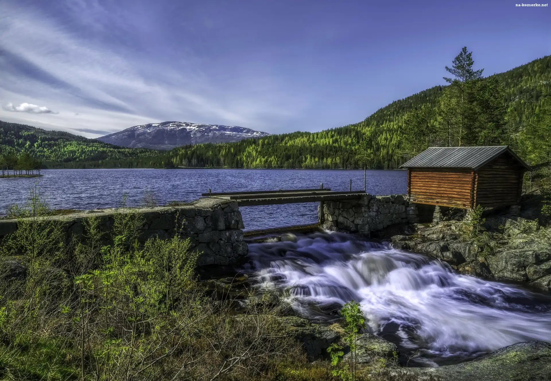 Norwegia, Szopa, Góry, Lasy, Jezioro na Komórkę