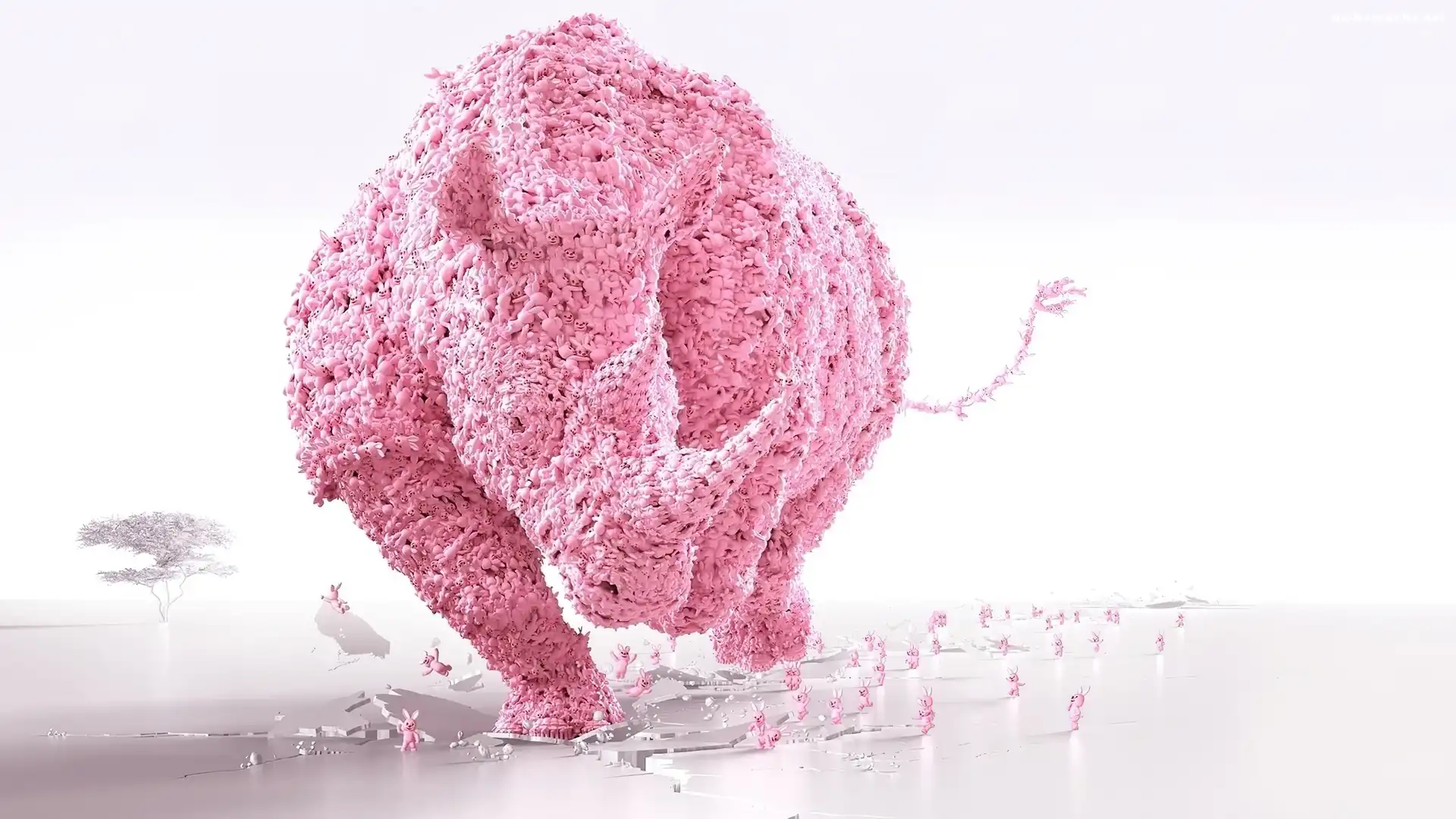 Różowy, Nosorożec, Króliki na Komórkę