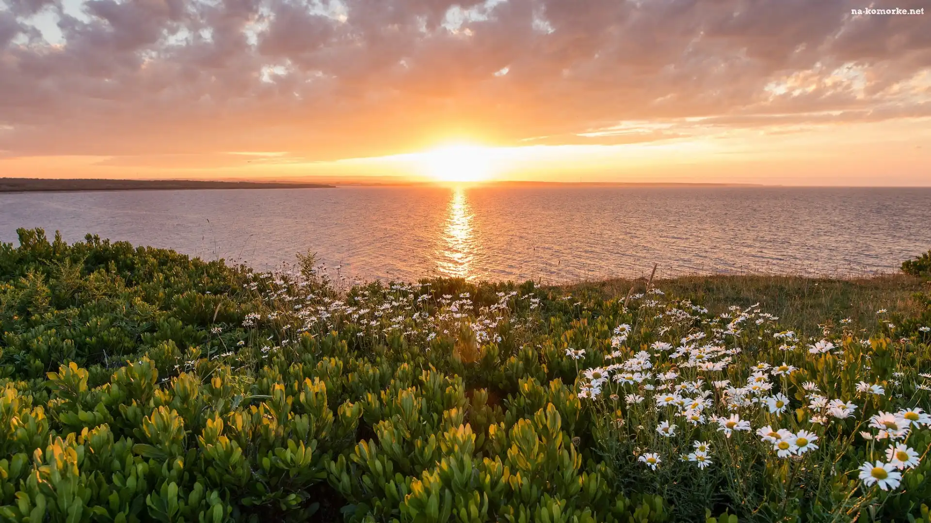 Kanada, Złocień, Zachód słońca, Rośliny, Nowa Szkocja, Morze - Ocean Atlantycki, Brzeg, Kwiaty na Komórkę |