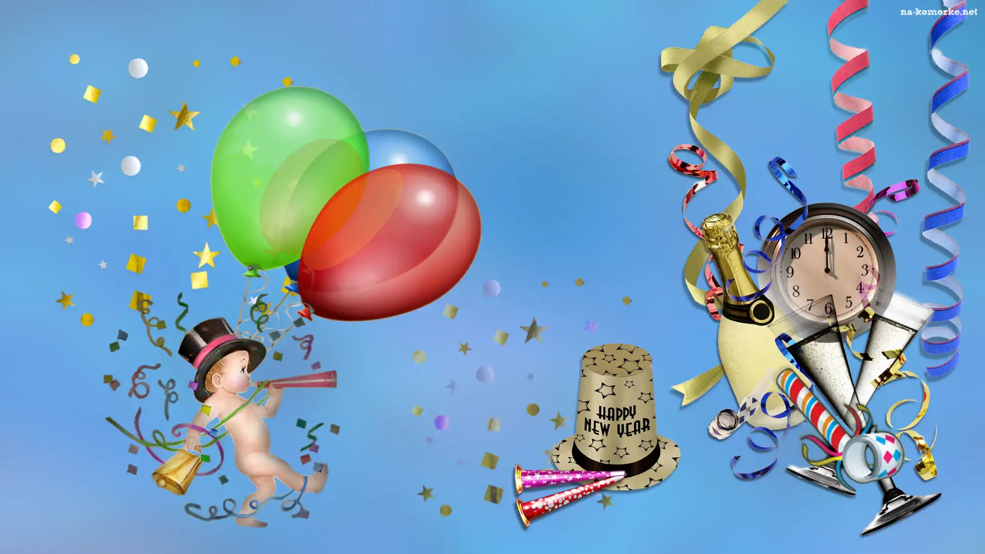 Nowy Rok, Ozdoby, Balony, Szampan na Komórkę