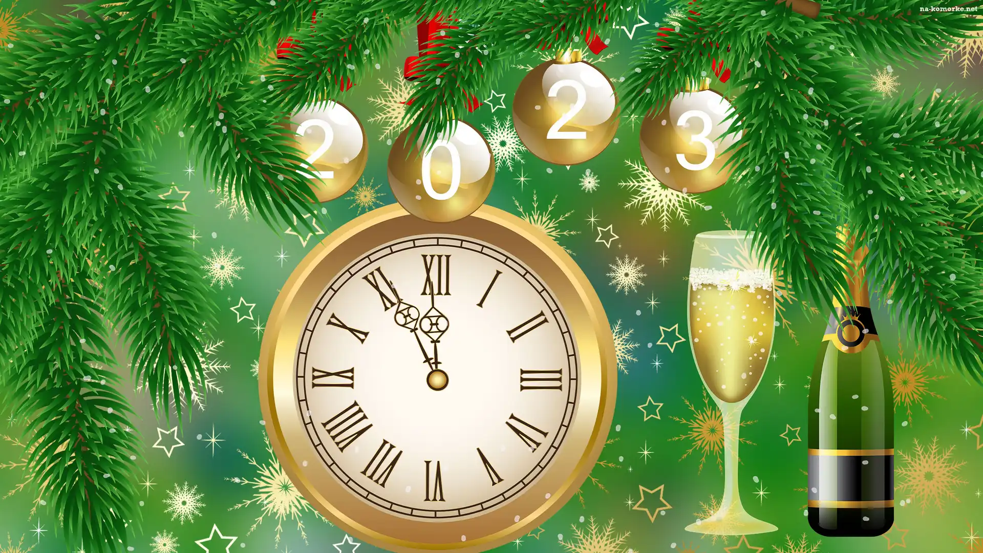 Sylwester, Zegar, Kieliszki, Nowy Rok, Grafika na Komórkę
