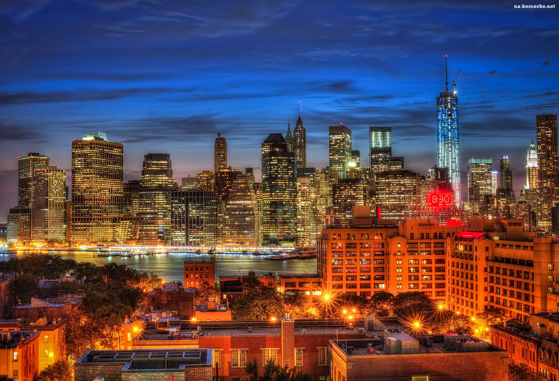Noc, Nowy Jork, USA, World Trade Center, Manhattan na Komórkę