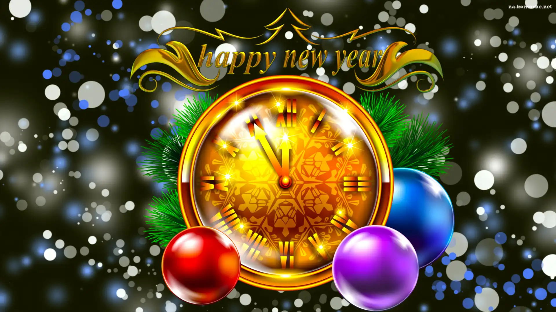Nowy Rok, Bombki, Zegar, Wskazówki na Komórkę