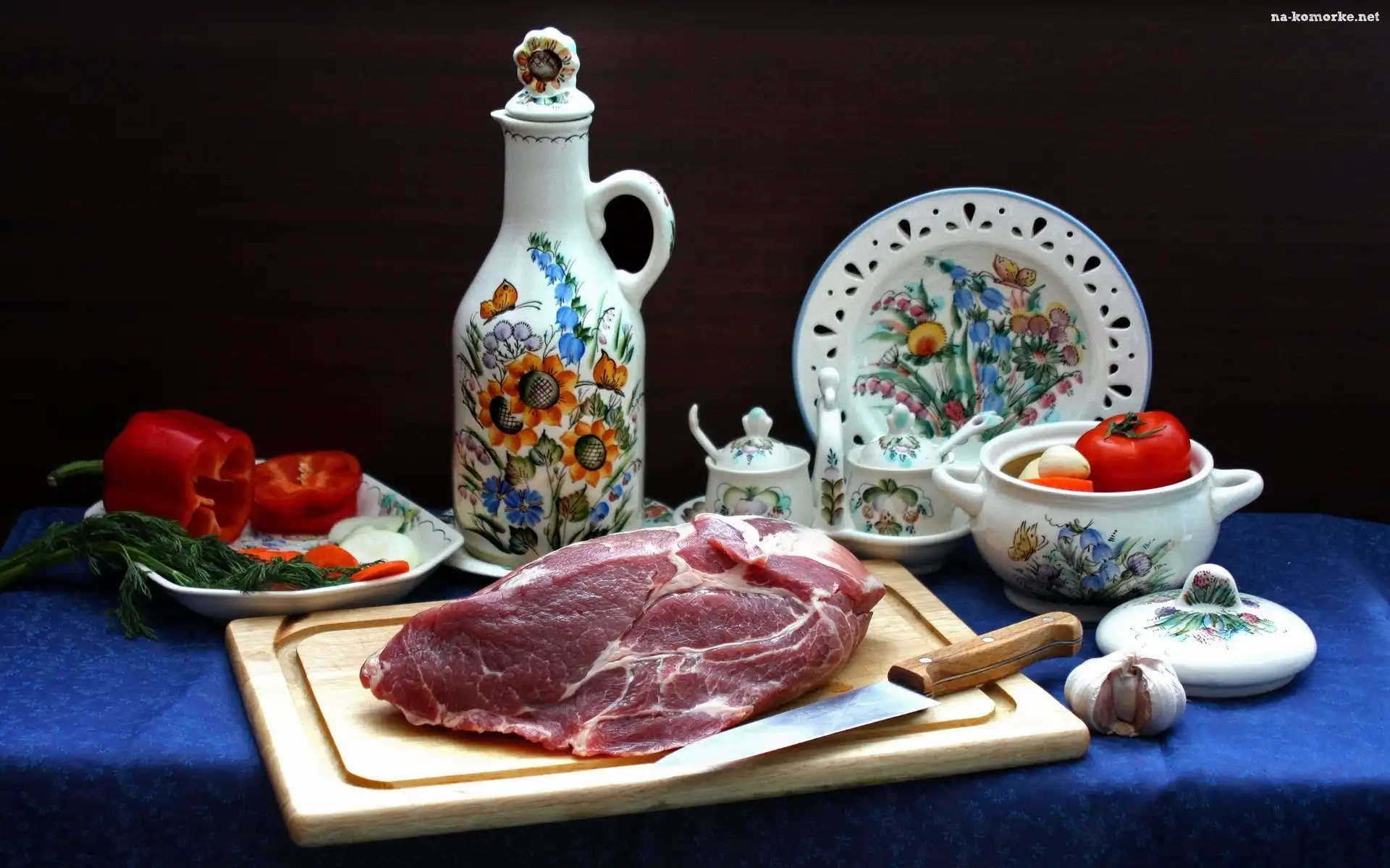 Nóż, Mięso, Warzywa, Naczynia, Deseczka na Komórkę