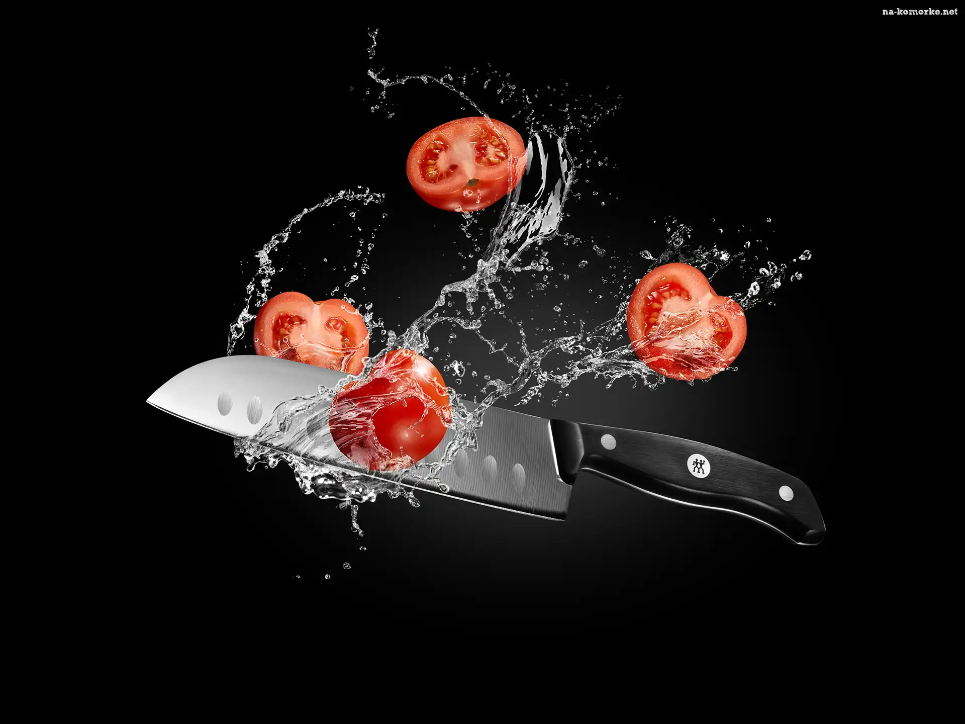Nóż, Pomidory, Woda, Przekrojone na Komórkę