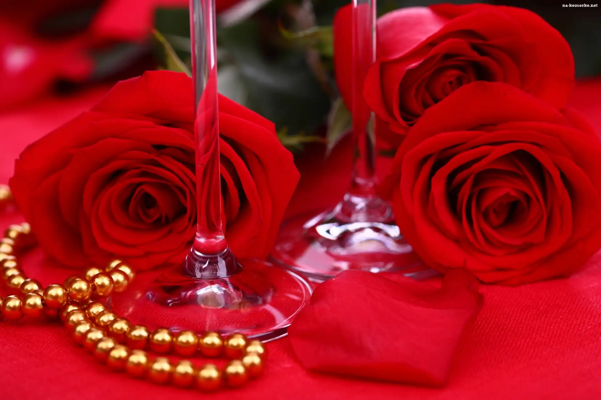Nóżki kieliszka, Tło czerwone, Perły, Róże na Komórkę