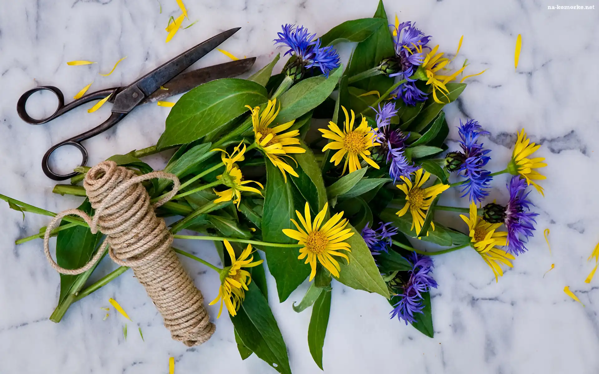 Nożyczki, Żółte, Kwiaty, Chabry, Nici na Komórkę