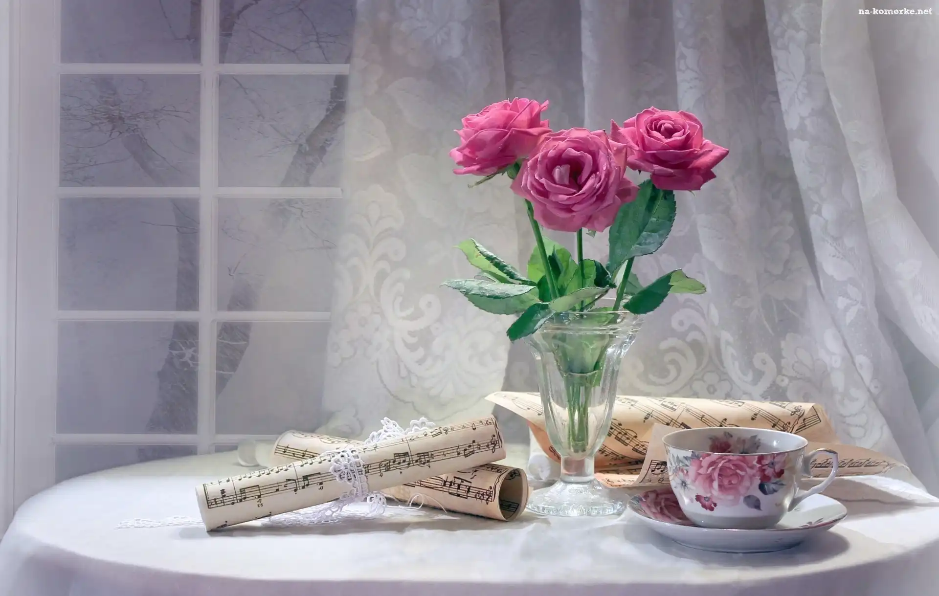 Nuty, Kompozycja, Bukiet, Róże, Filiżanka na Komórkę