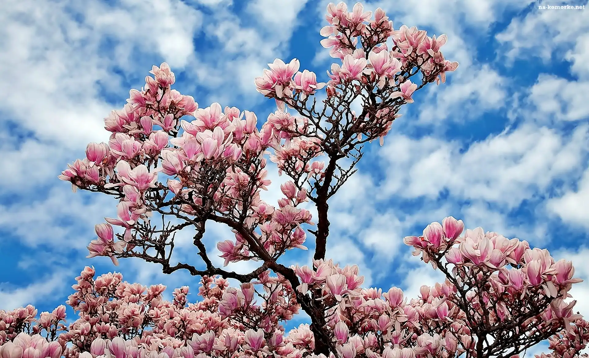 Obłoki, Wiosna, Kwitnąca, Magnolia, Niebo na Komórkę