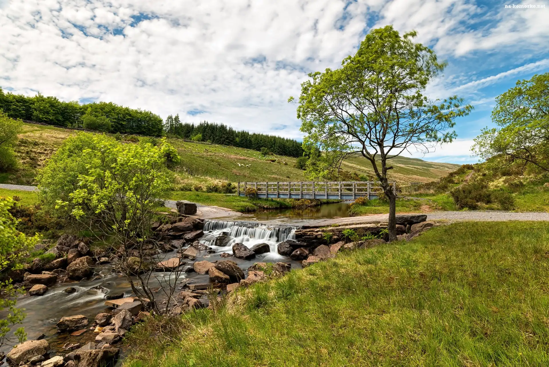 Obłoki, Las, Łąki, Strumień, Most na Komórkę