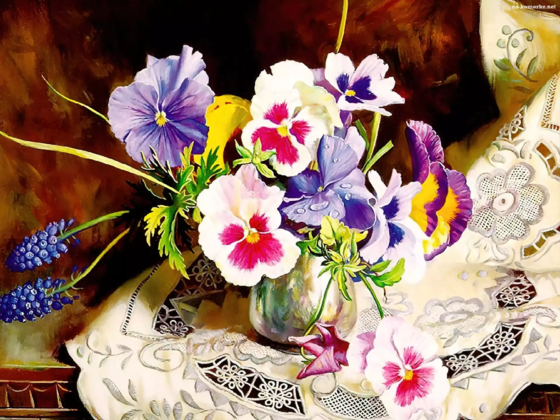 Obraz, Bratki, Bukiet, Serweta na Komórkę