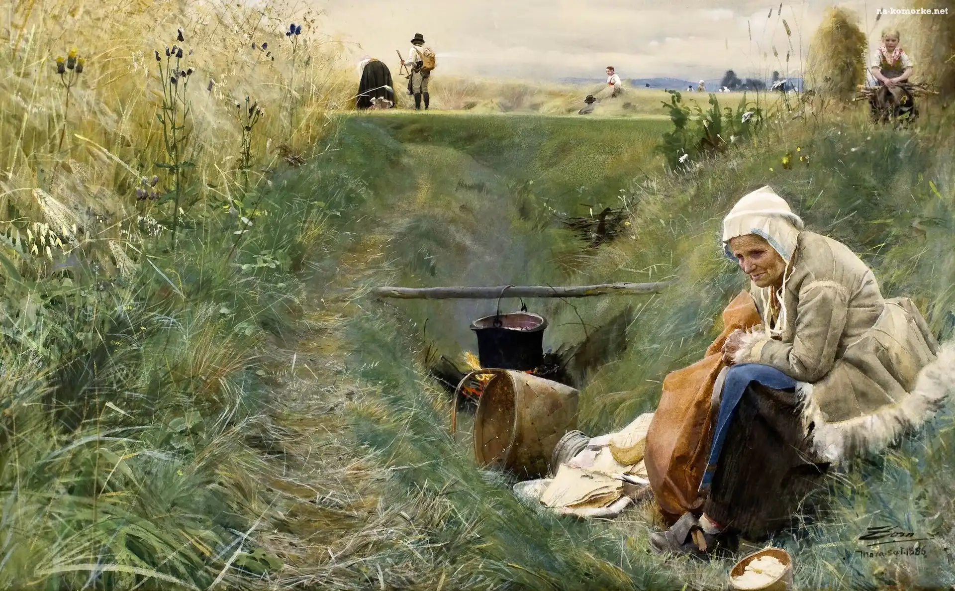 Kobieta, Obraz, Malarstwo, Pole, Anders Zorn, Ognisko na Komórkę
