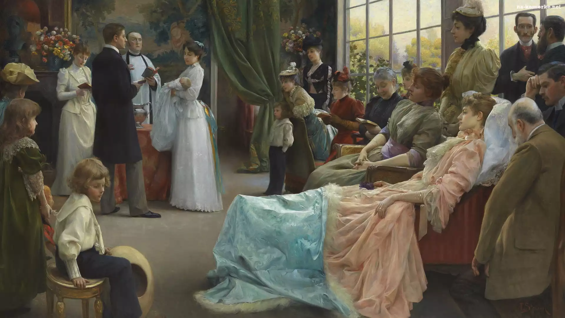 Chrzest, Obraz, Malarstwo, Rodzina, Julius LeBlanc Stewart, Ksiądz na Komórkę