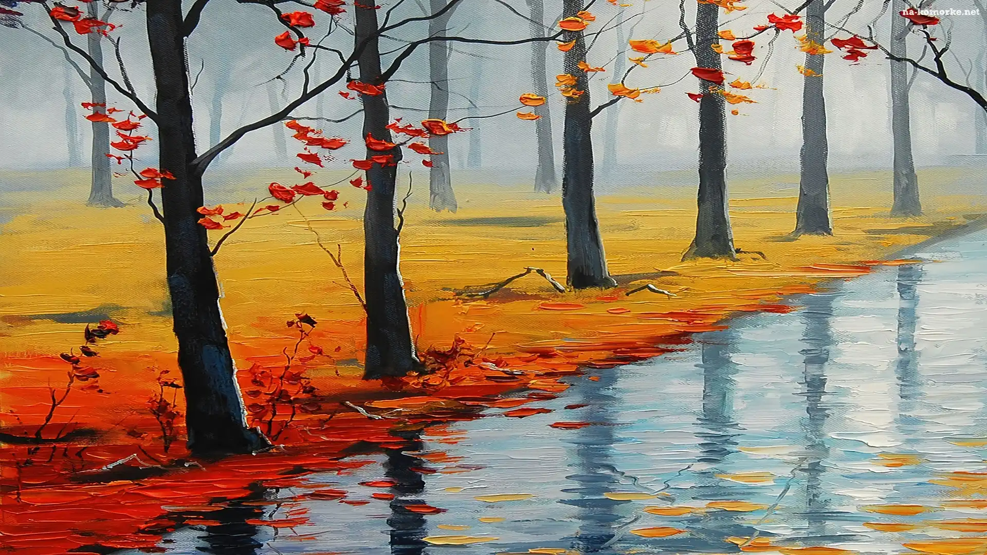 Obraz, Rzeka, Drzewa, Liście, Jesień na Komórkę