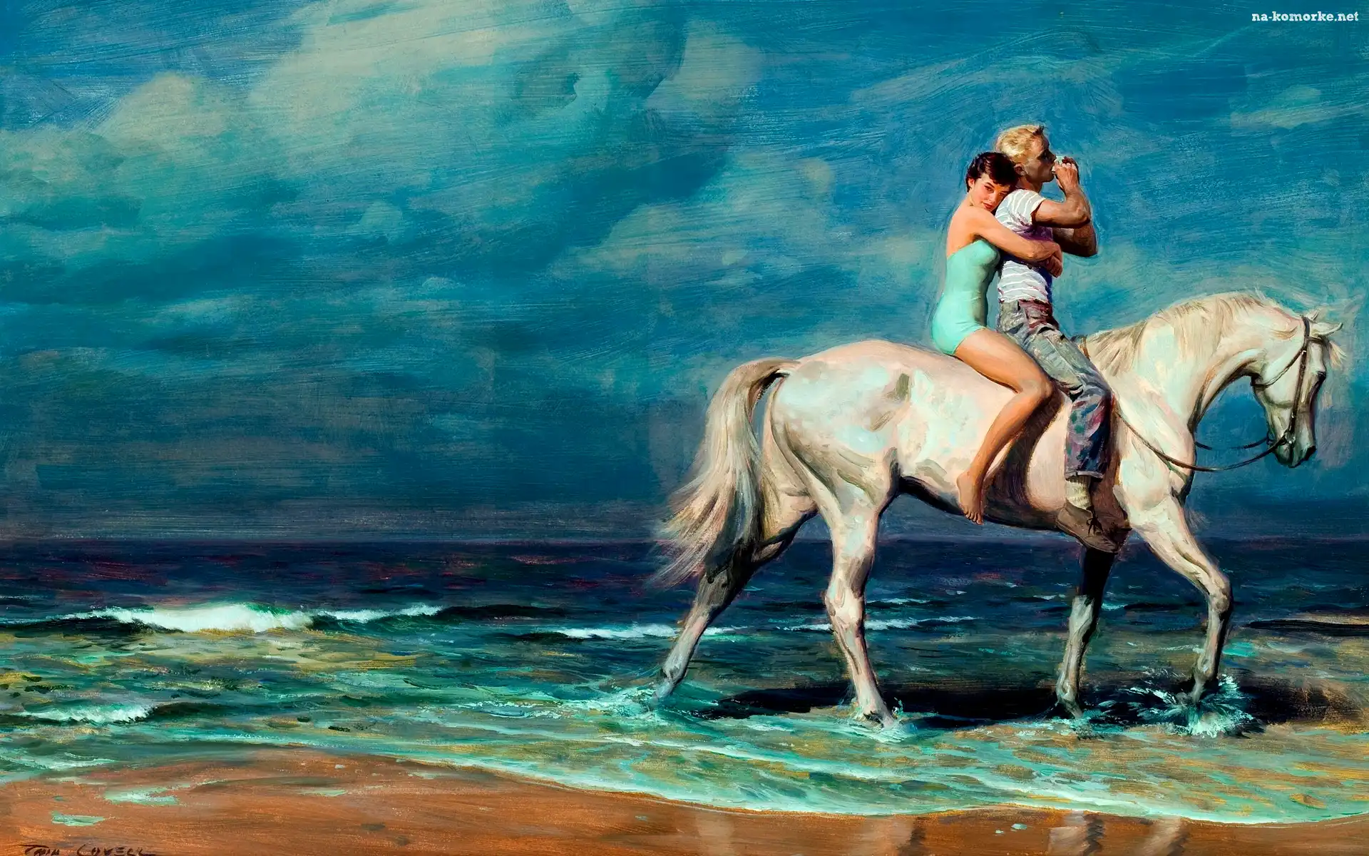 Obraz, Zakochani, Morze, Koń na Komórkę