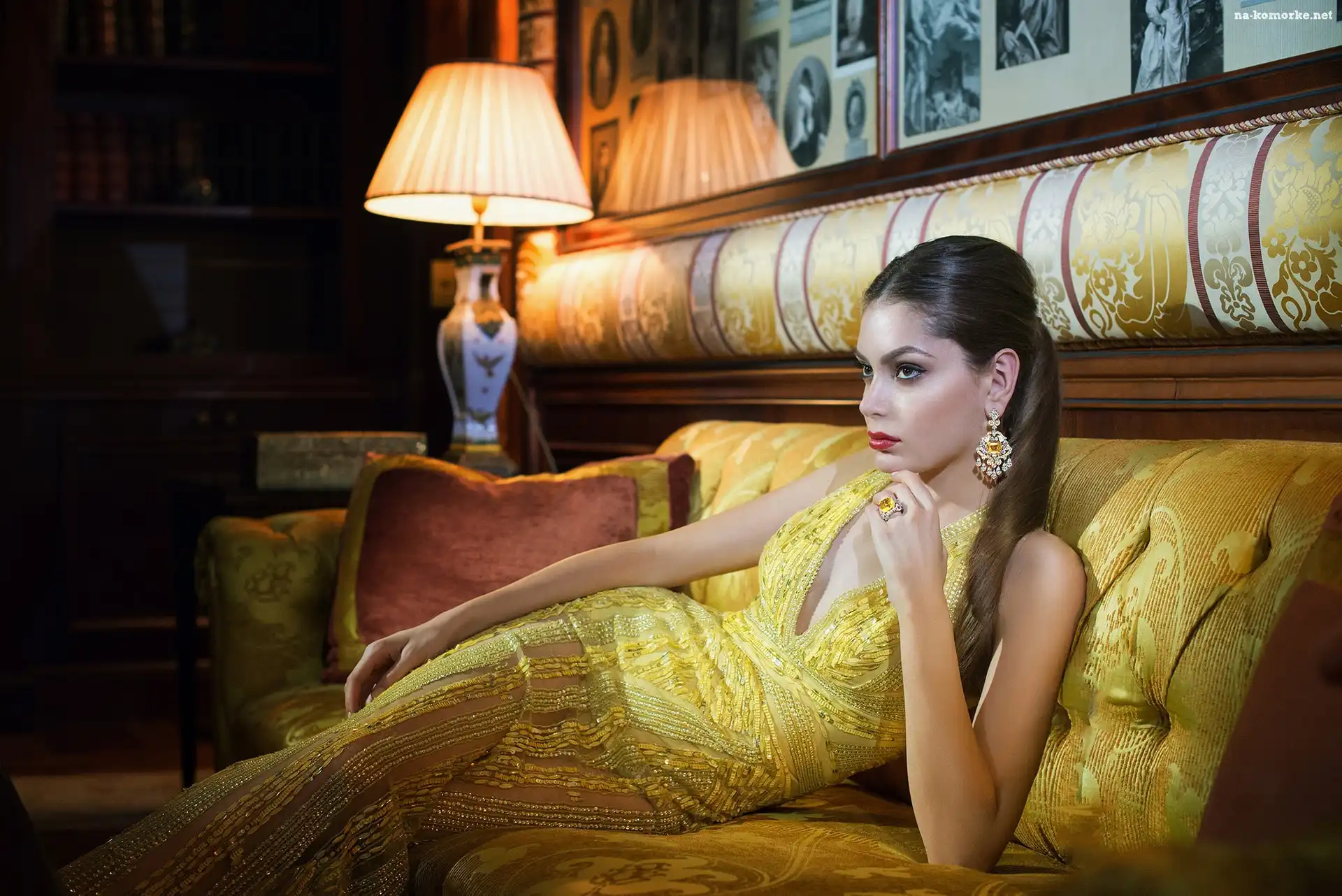 Kobieta, Obrazy, Sofa, Pokój, Salon, Komnata, Lampa na Komórkę