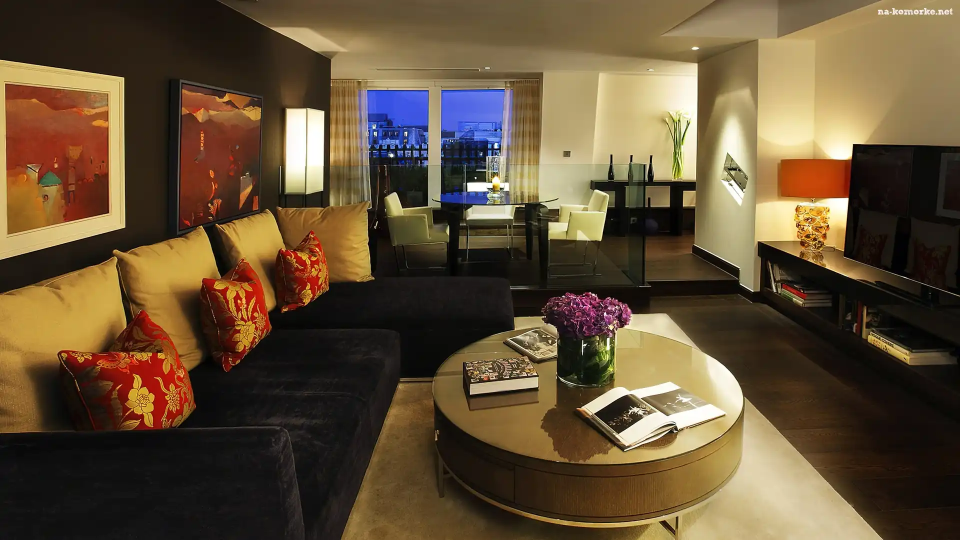 Obrazy, Pokój, Stolik, Wersalka, Poduszki na Komórkę