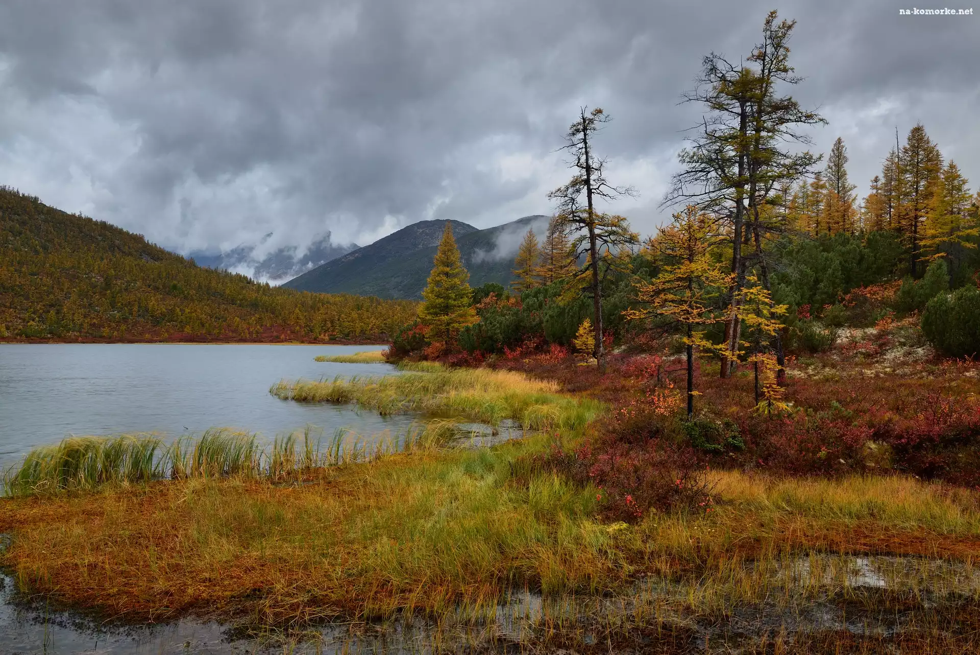 Kołyma, Rosja, Las, Jesień, Roślinność, Obwód magadański, Rzeka Nevedomyy, Góry Kołymskie, Drzewa na Komórkę |