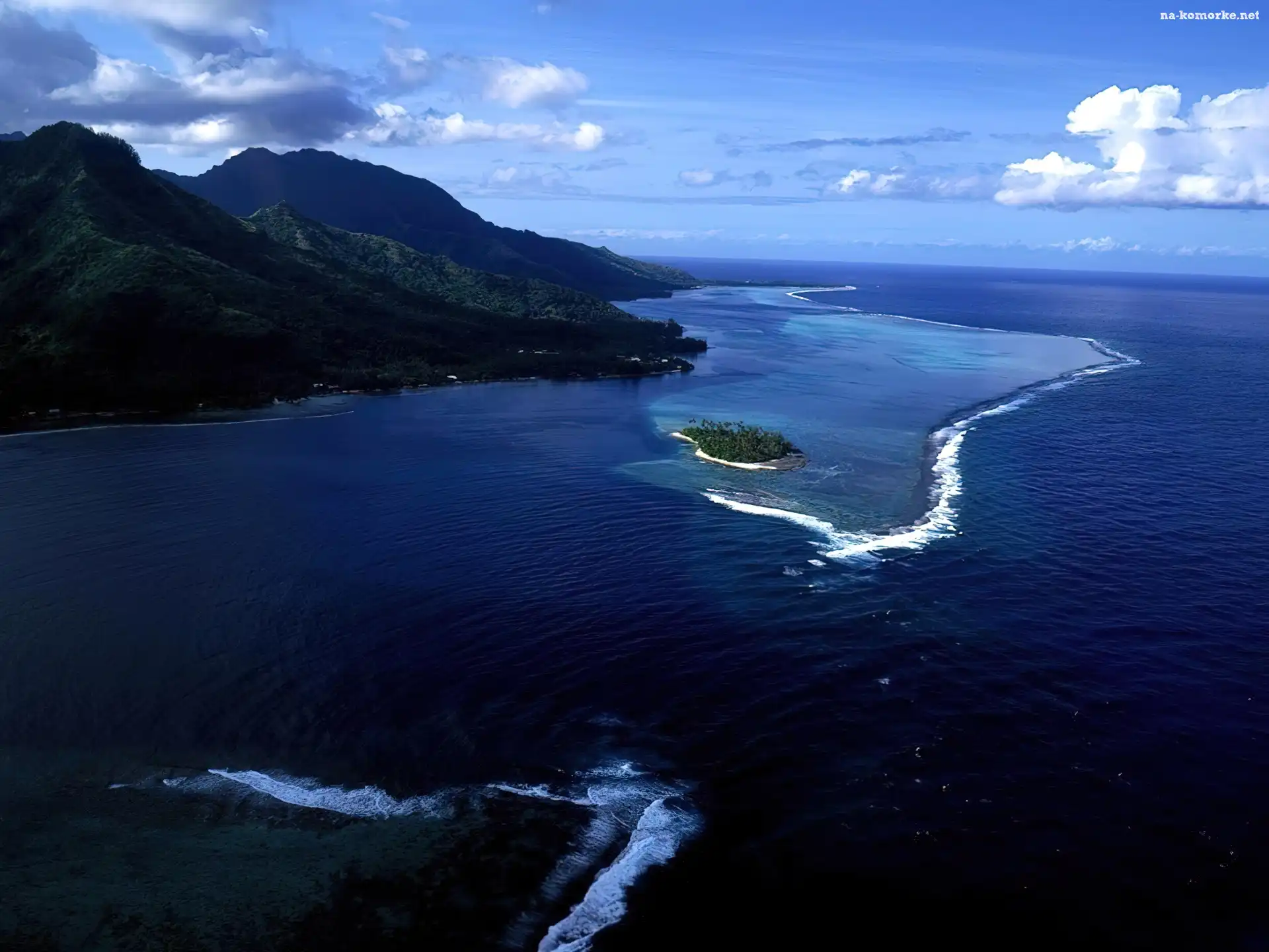 Ocean, Tahiti, Góry, Wysepka na Komórkę