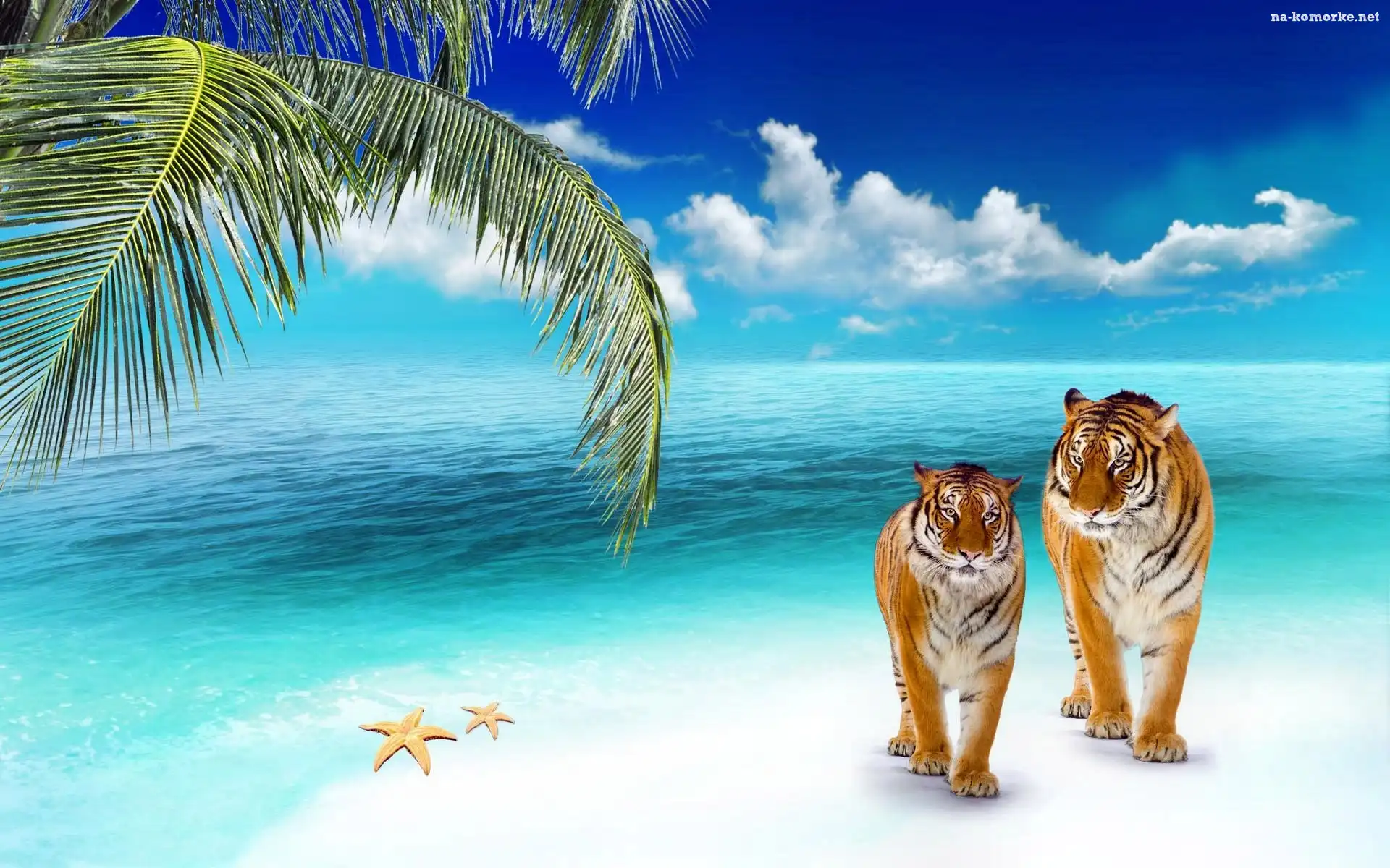 Ocean, Tygrysy, Plaża, Palma na Komórkę