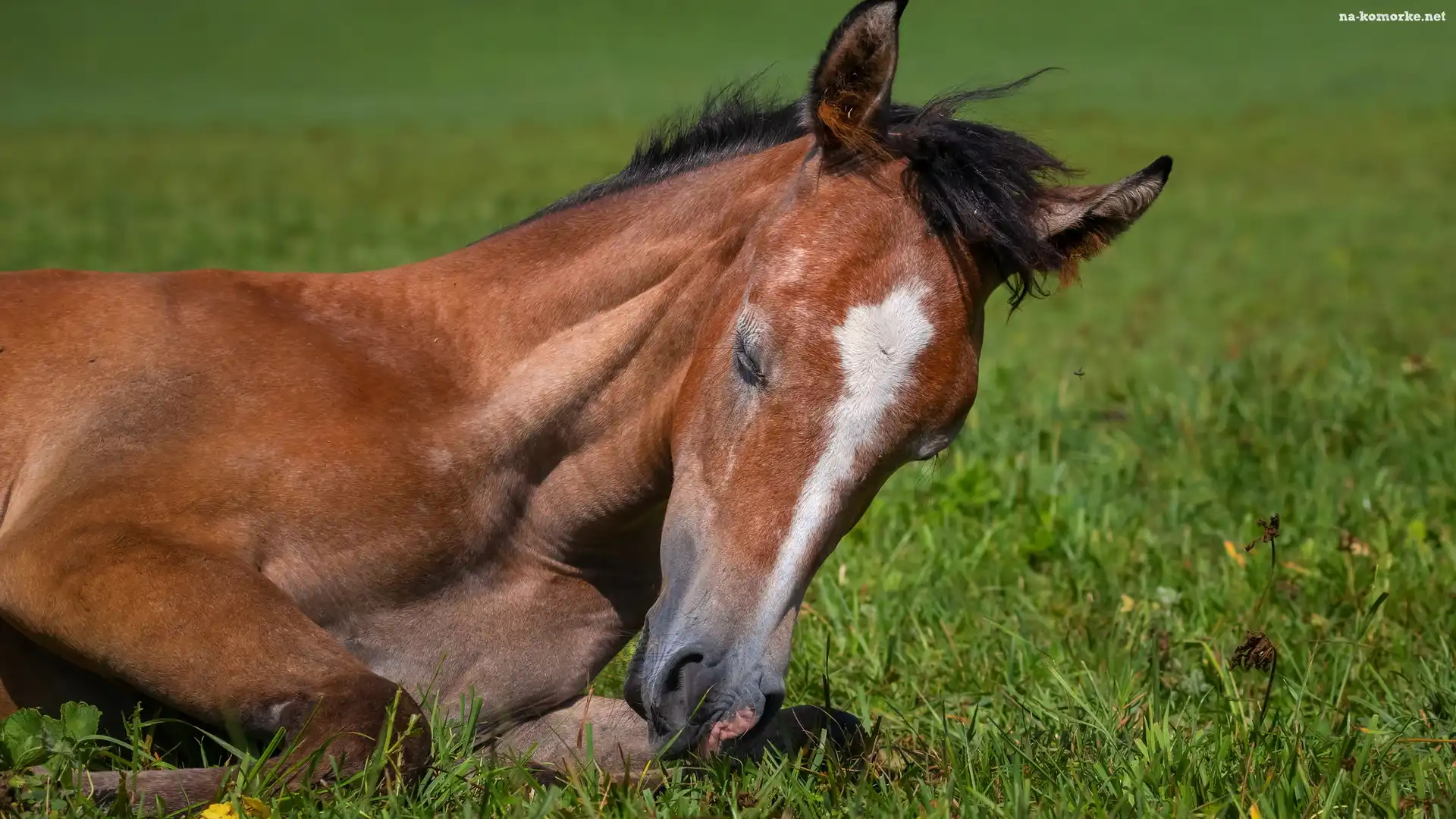 Oczy, Leżący, Koń, Źrebak, Przymknięte na Komórkę