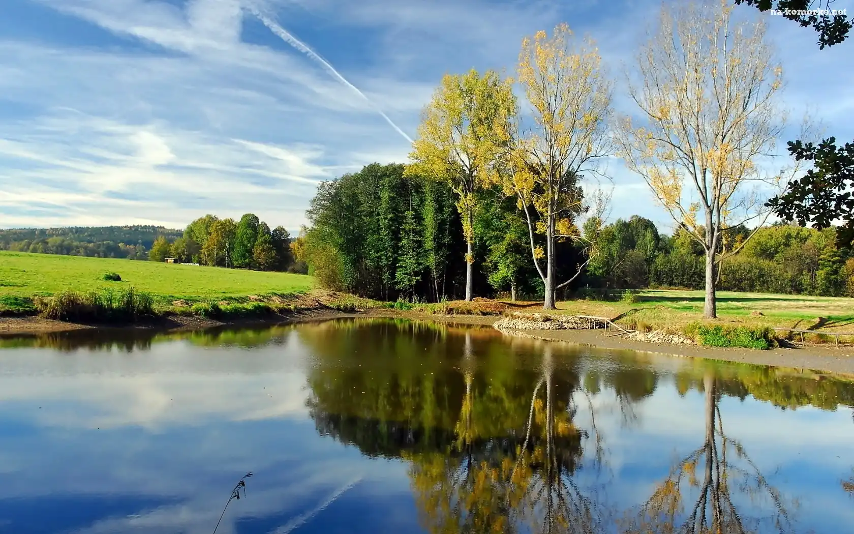 Odbicie, Jesień, Lasy, Łąki, Jezioro na Komórkę