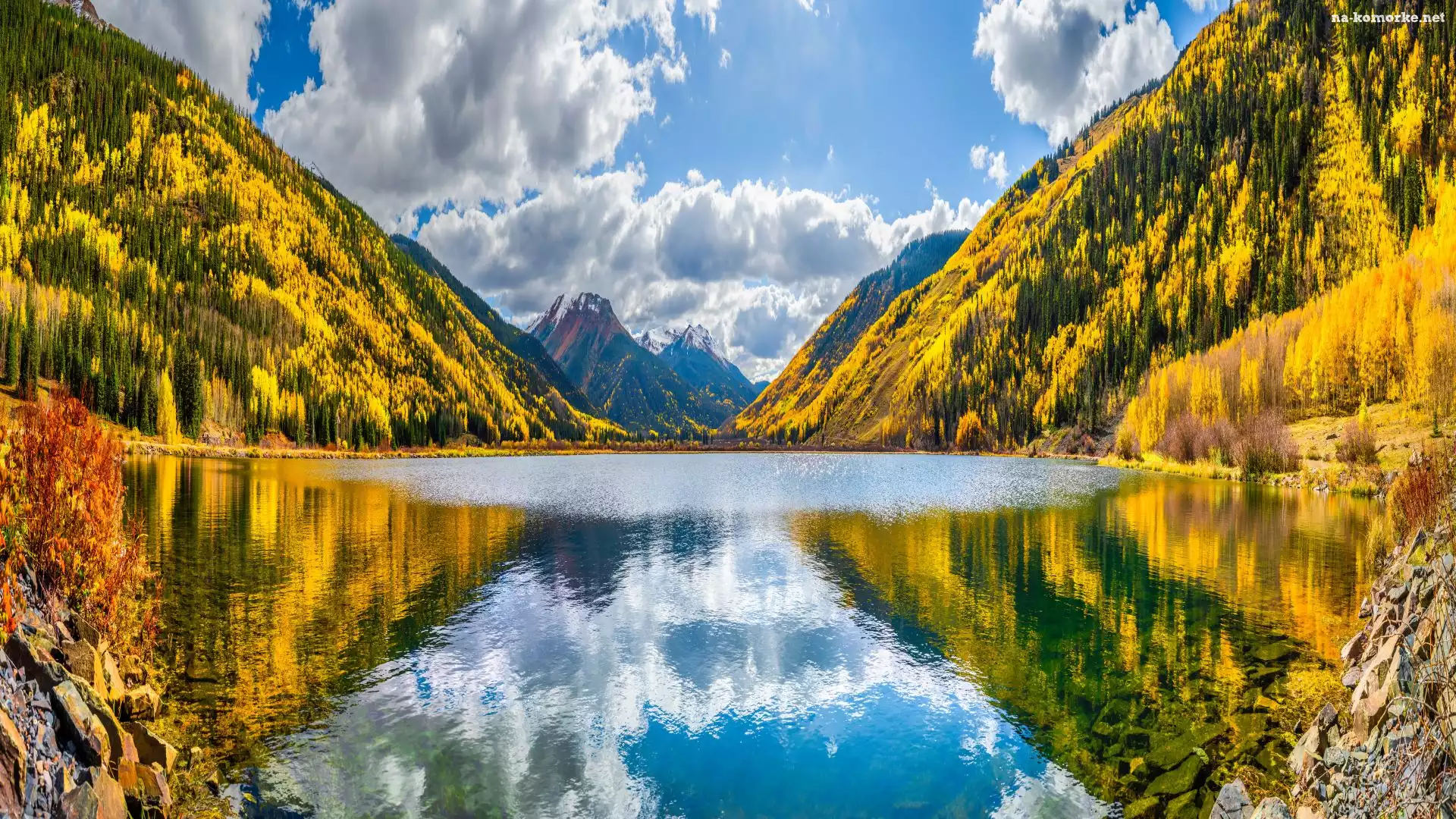 Obłoki, Jesień, Góry, Odbicie, Jezioro, Drzewa na Komórkę