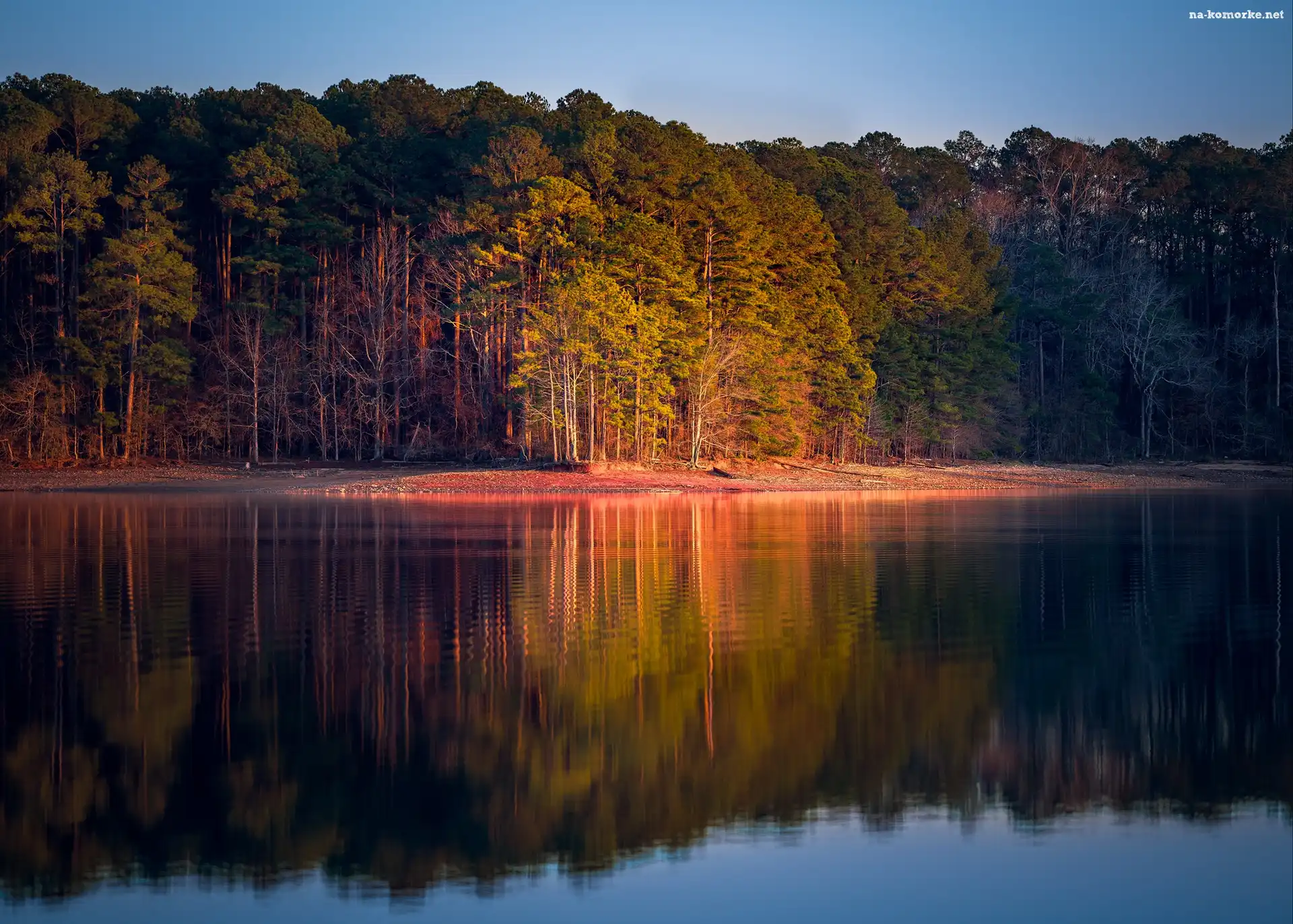 Odbicie, Jesień, Las, Drzewa, Jezioro na Komórkę