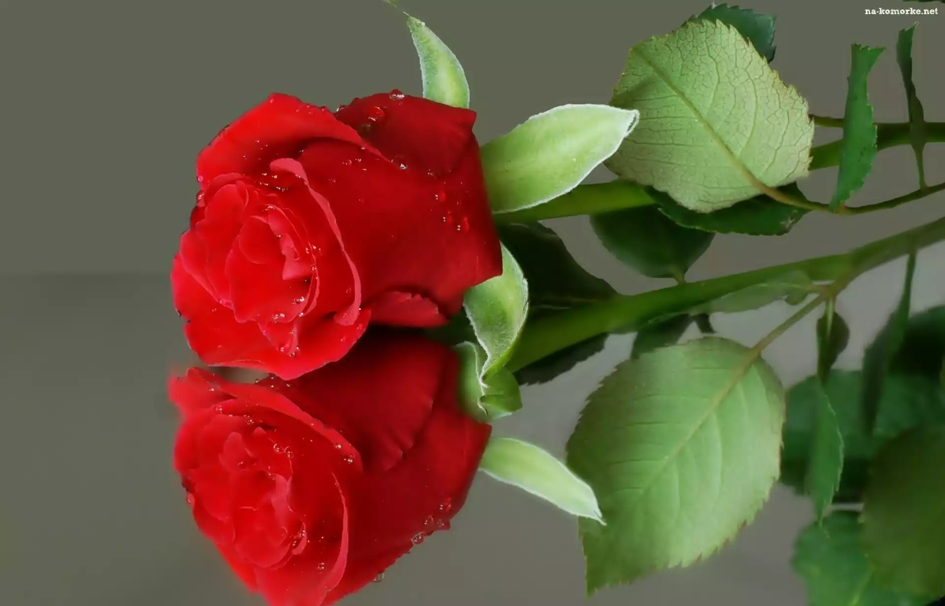 Odbicie, Czerwona, Róża, Krople, Wody na Komórkę