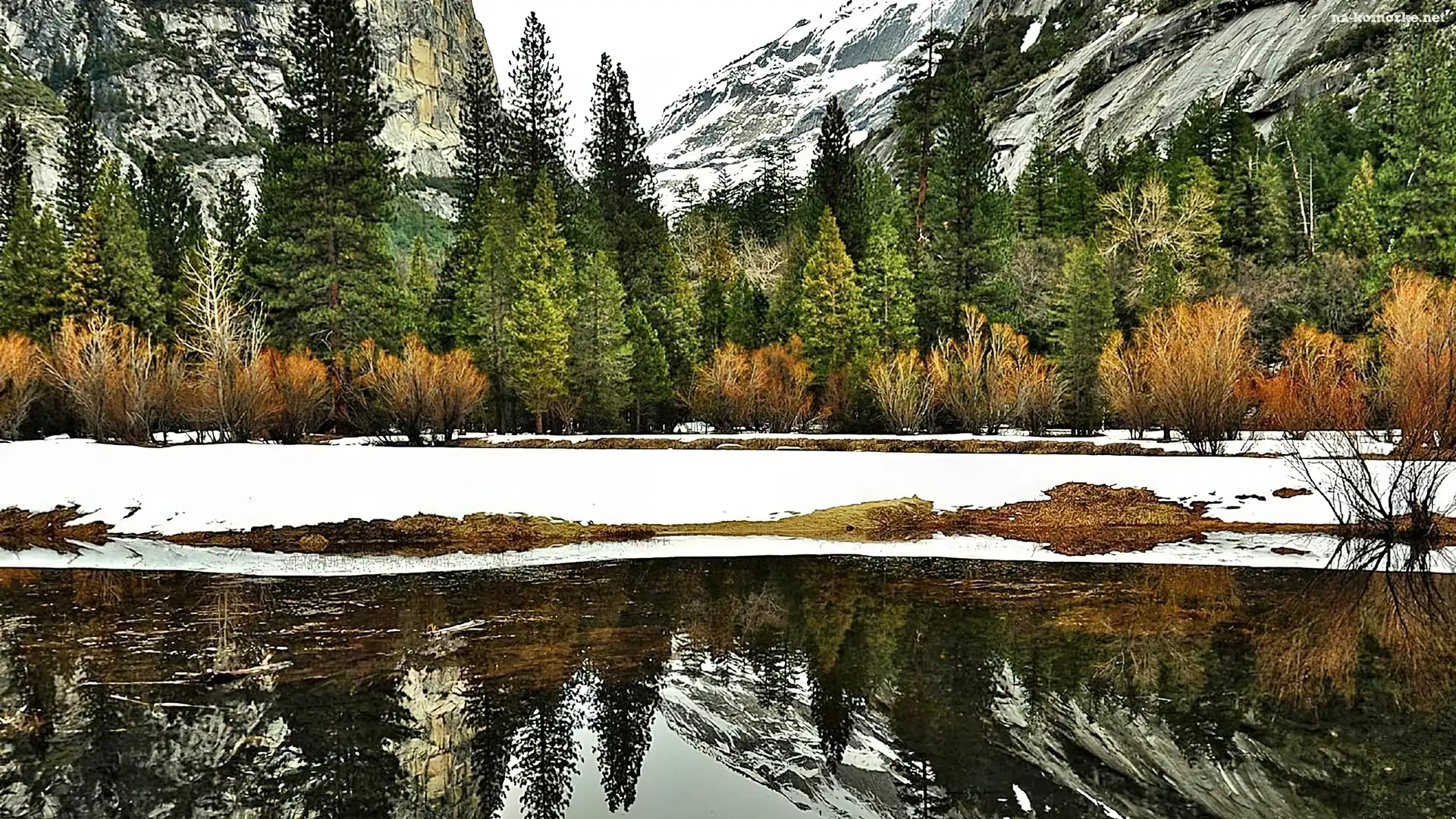 Odbicie, Zima, Góry, Las, Jezioro na Komórkę