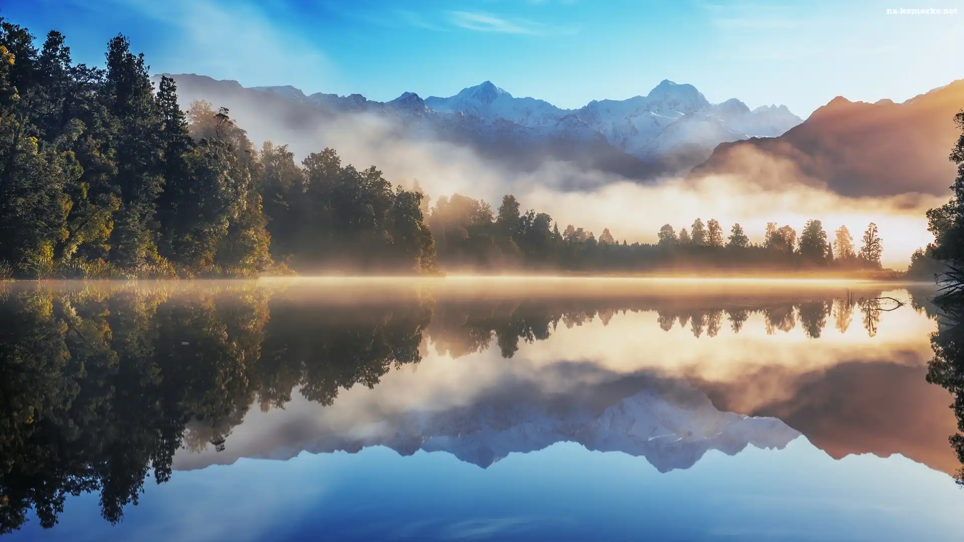 Odbicie, Jezioro, Las, Mgła, Wzgórza na Komórkę