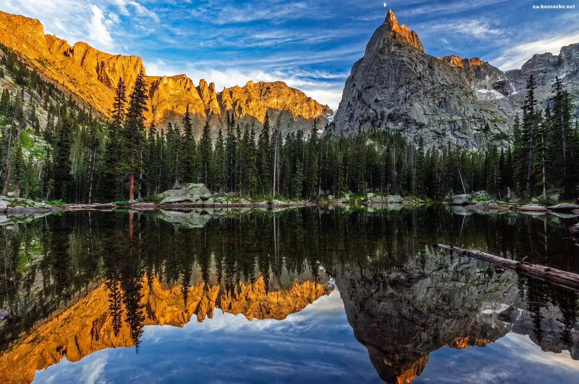 Drzewa, Mirror Lake, Szczyt, Jezioro, Lone Eagle Peak, Góry, Stan Kolorado, Stany Zjednoczone, Indian Peaks Wilderness, Odbicie na Komórkę |