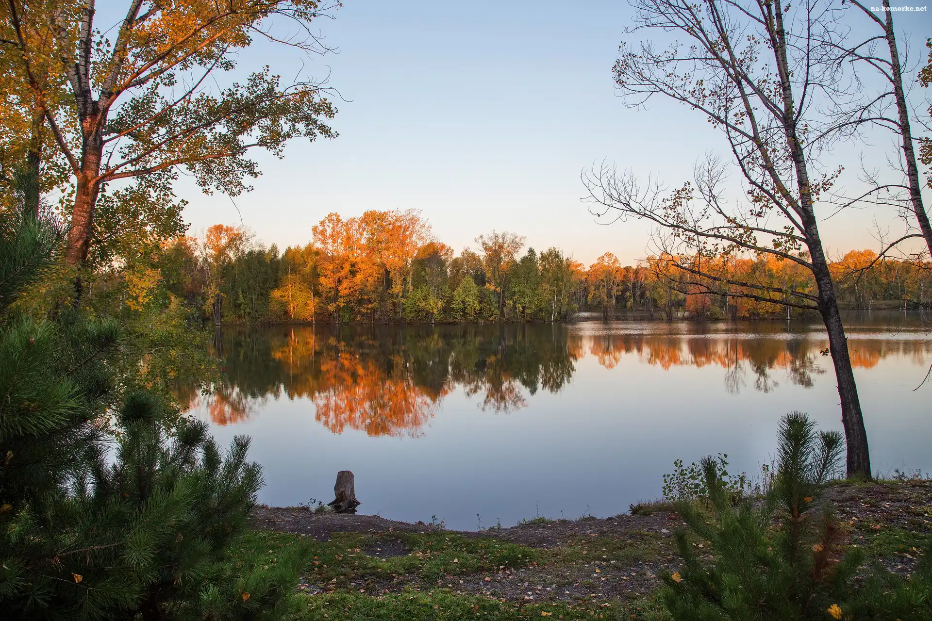 Odbicie, Jesień, Jezioro, Pożółkłe, Drzewa na Komórkę