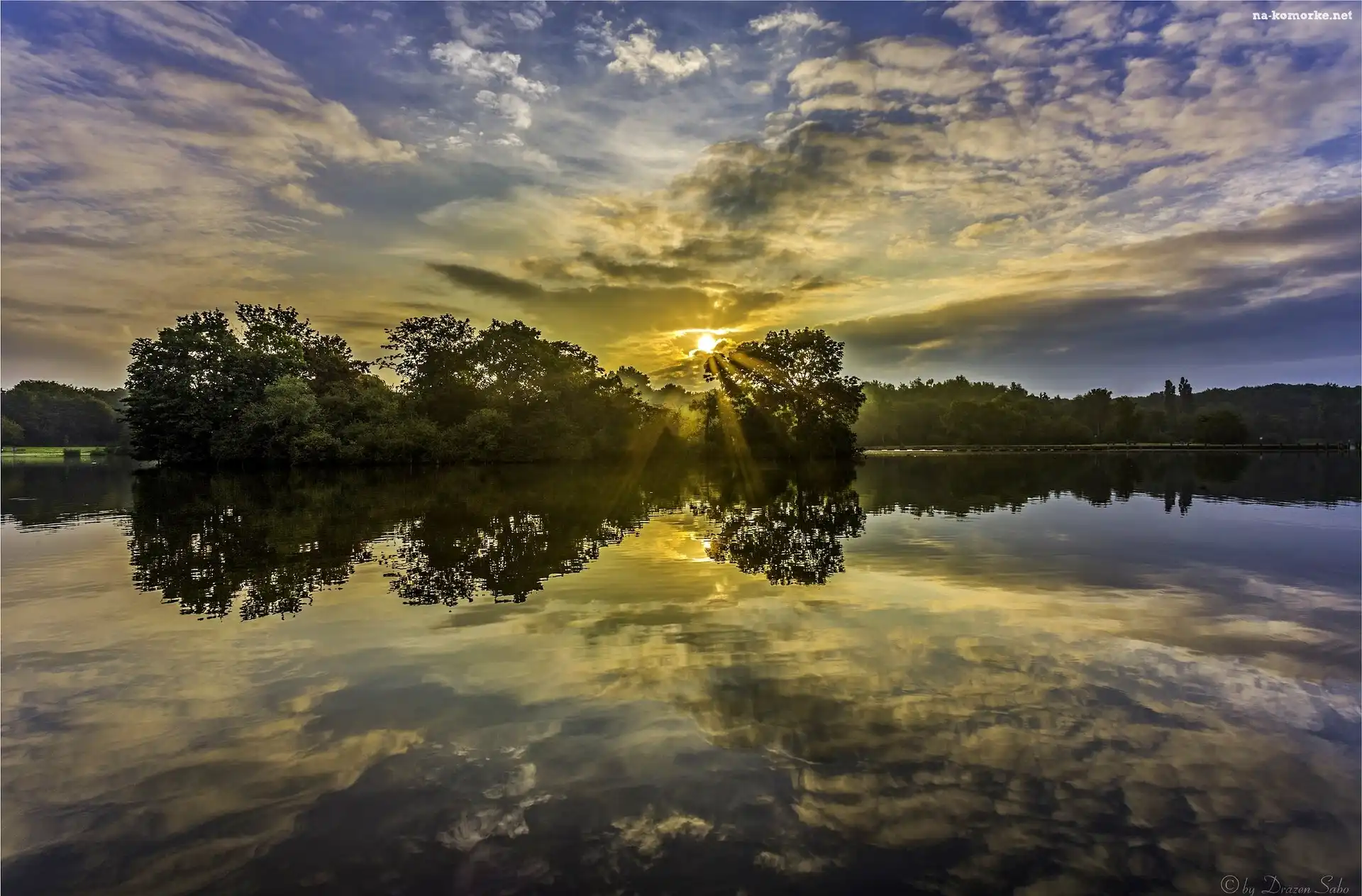 Odbicie, Rzeka, Drzewa, Promienie, Słońca na Komórkę