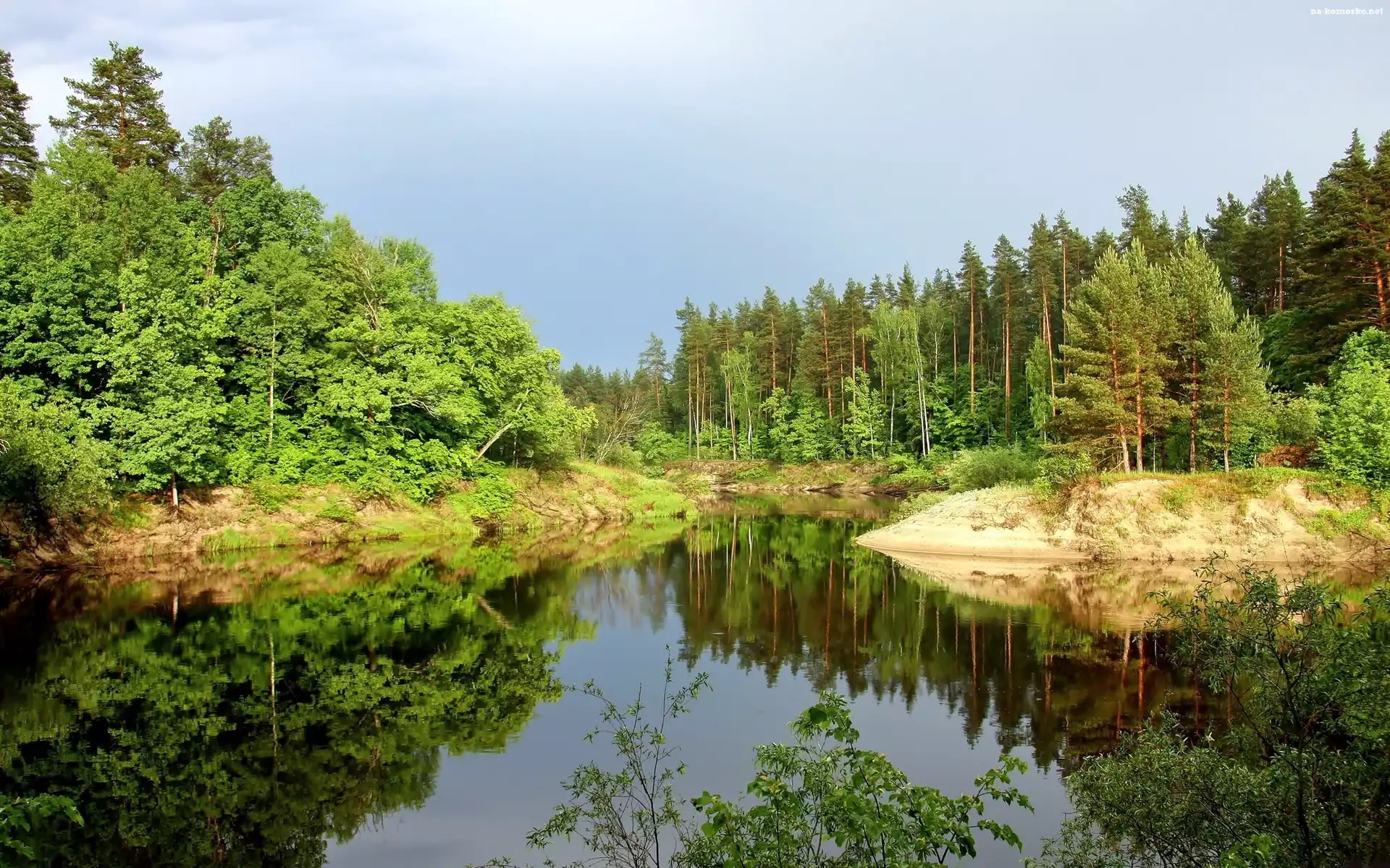 Odbicie, Jezioro, Las, Światło, Cień na Komórkę