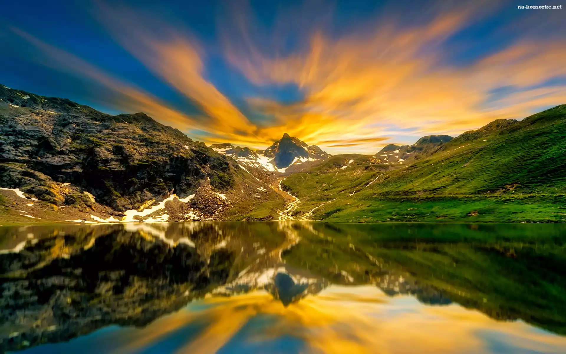 Odbicie, Jezioro, Góry, Wzgórza, Chmury na Komórkę