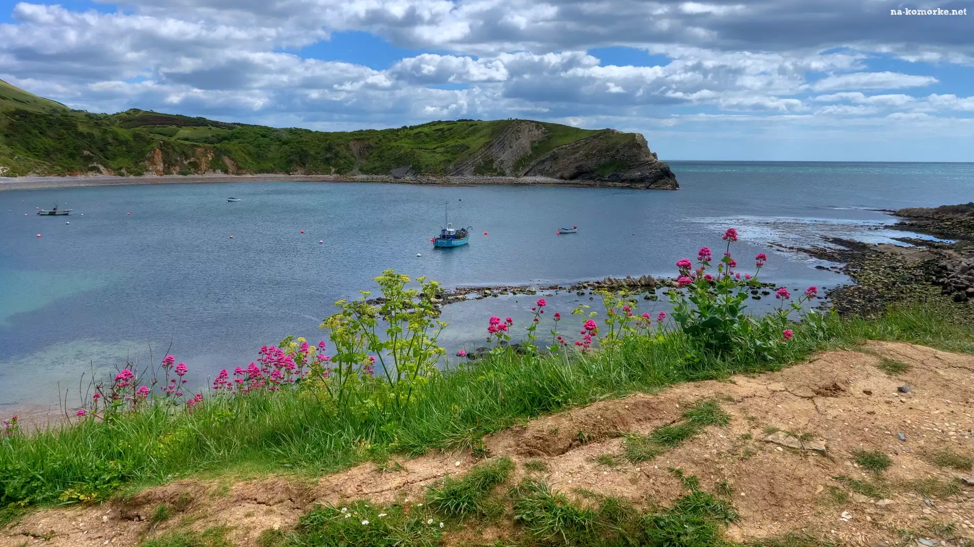 Łódki, Zatoka, Morze, Niebo, Kuter, Kwiaty na Komórkę