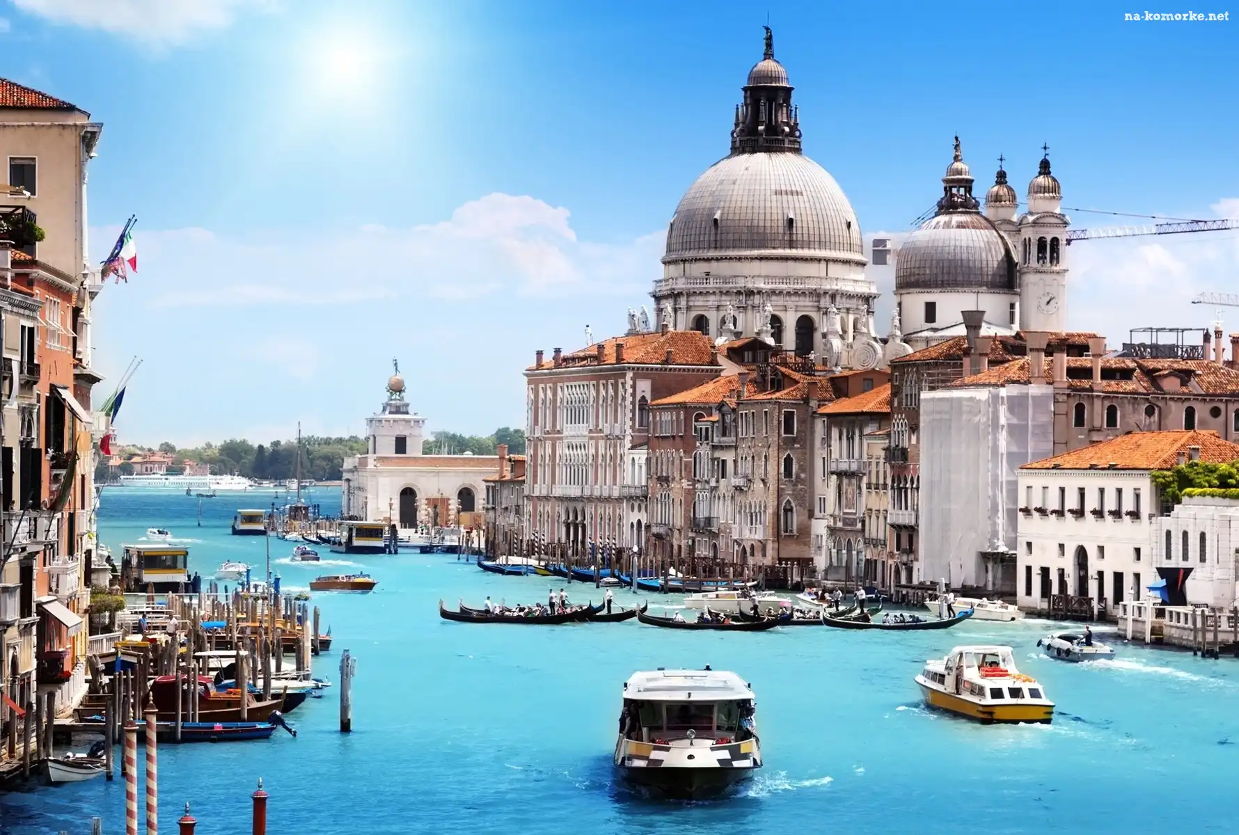 Łodzie, Budowle, Miasto, Wenecja, Woda, Niebo na Komórkę