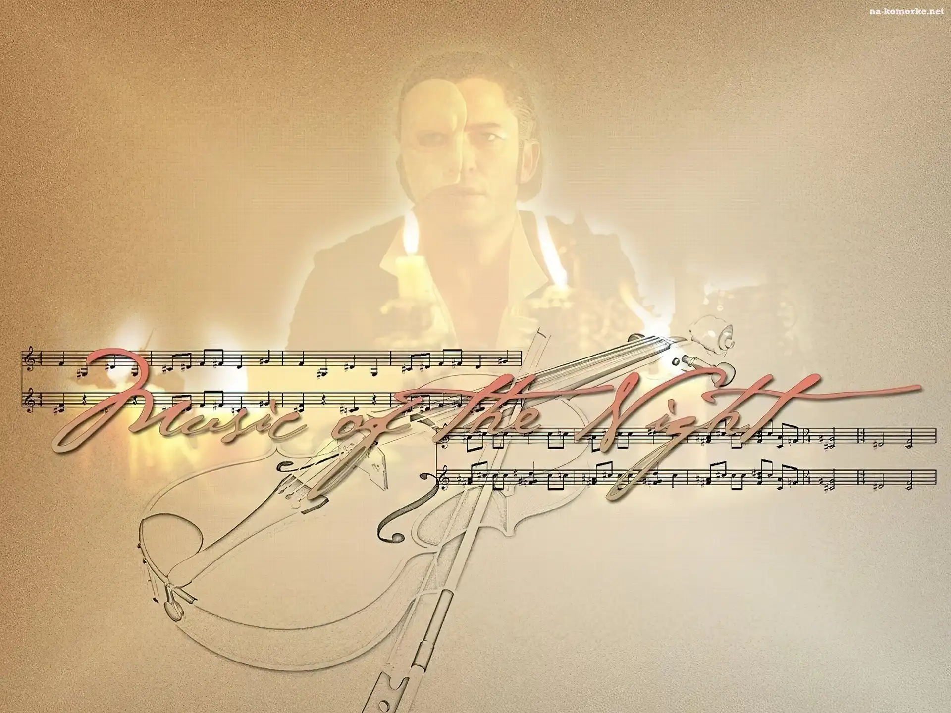 Phantom Of The Opera, świeczki, Gerard Butler, skrzypce na Komórkę