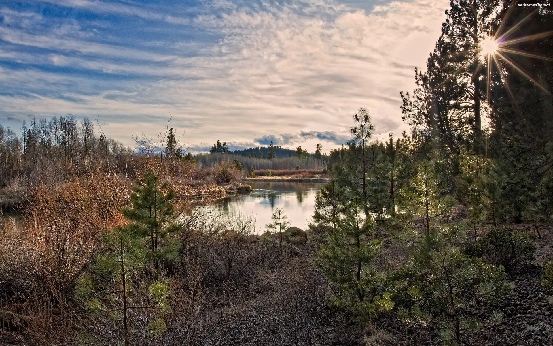 Ogołocony, Promienie Słońca, Las, Jezioro na Komórkę