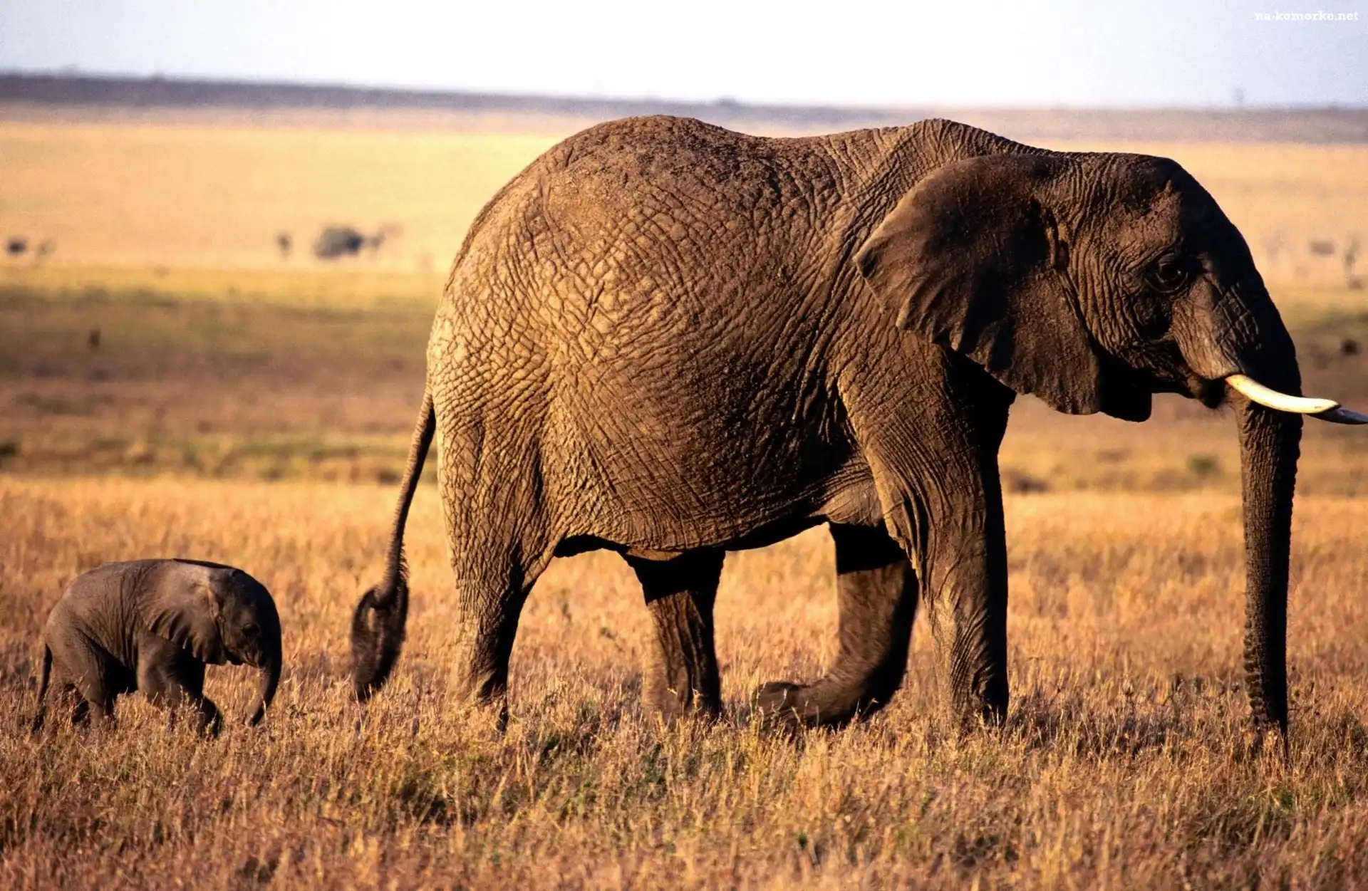 ogon, słonie, słoniątko, trąba, kły na Komórkę